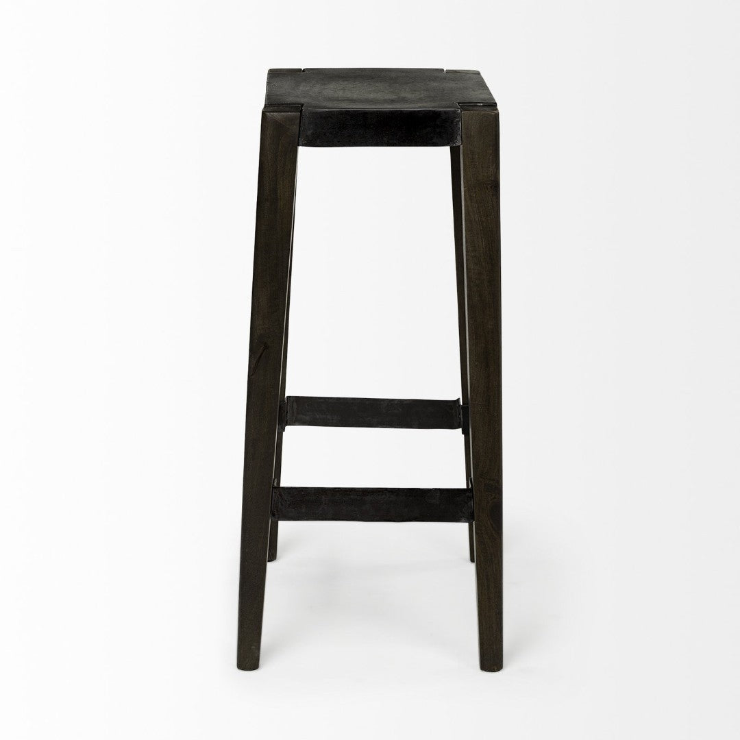 - Expertly crafted from solid wood and iron components, the Nell III is a bar stool made to stand the test of time. The stool's flat iron seat is braced by a four-legged, solid mango wood frame that ensures exceptional stability and sturdiness.