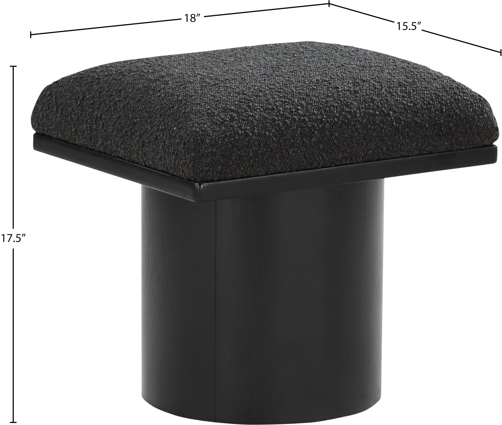 - Dimensions: 466Black-C Pavilion Black Boucle Fabric Bench/Stool - 15.5" W x 18" D x 17.5" H