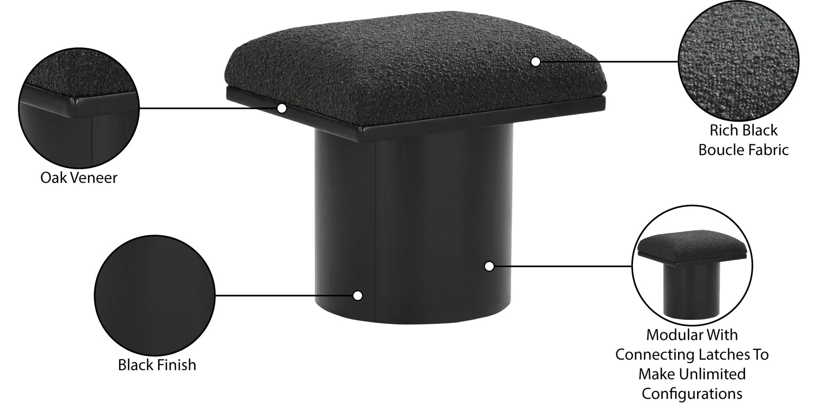 - Material: 466Black-C Pavilion Black Boucle Fabric Bench/Stool - Boucle Fabric / Plywood with Oak Veneer with Black Finish