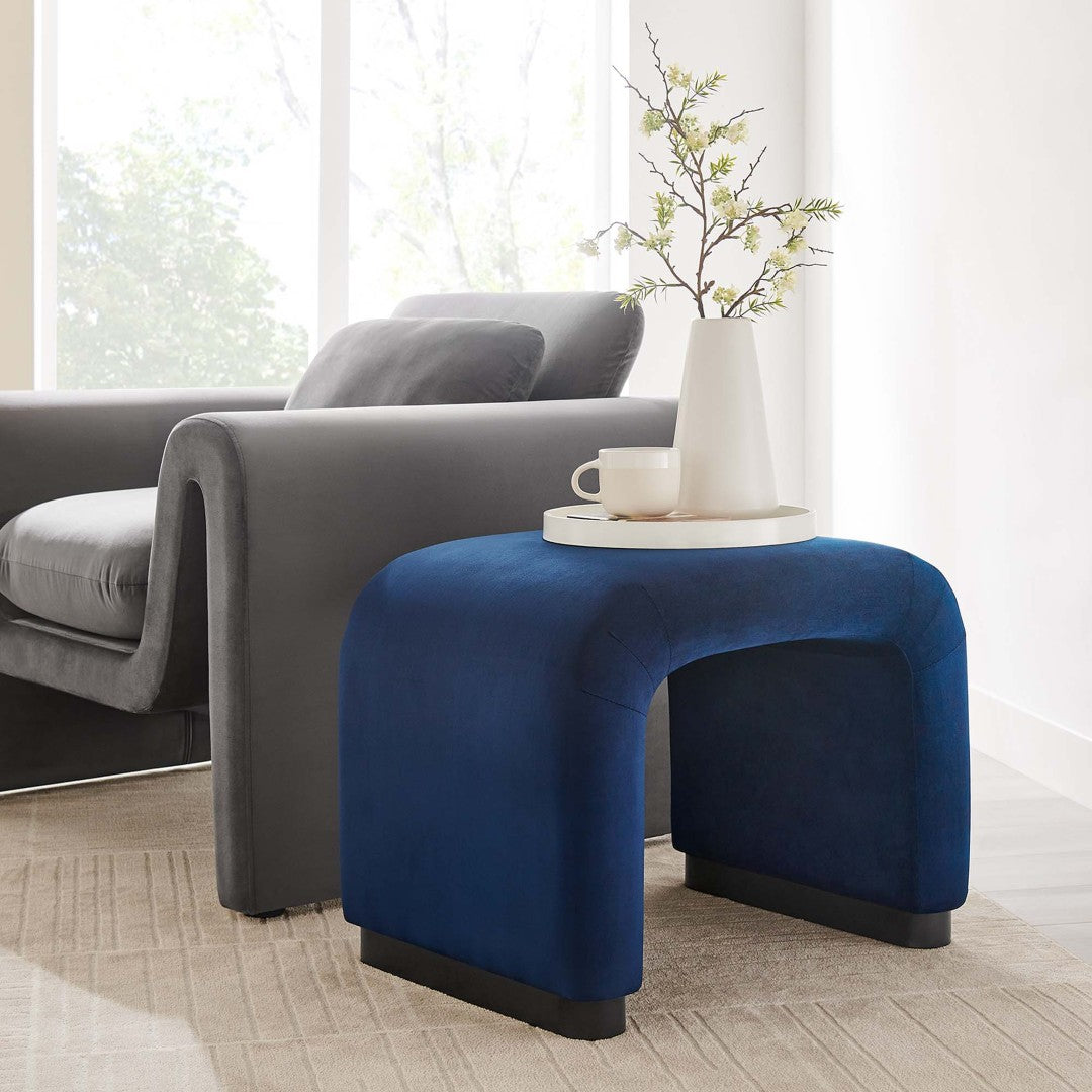 Give your room an instant upgrade with the Koda Performance Velvet Waterfall Stool — a versatile, sculptural piece that blends plush comfort with contemporary style. Upholstered in stain-resistant performance velvet over dense foam, its flowing waterfall silhouette and solid metal base provide both visual appeal and reliable support, making it ideal as extra seating, a chic side table, or a striking accent in living rooms, lounges, or hallways.