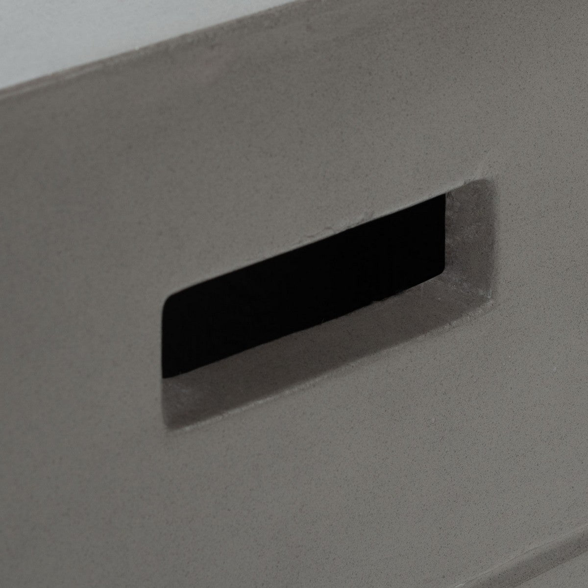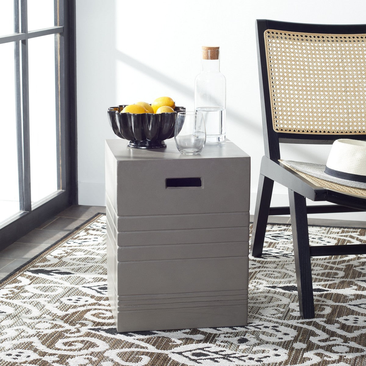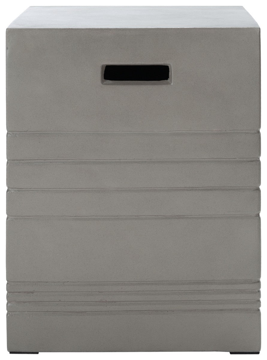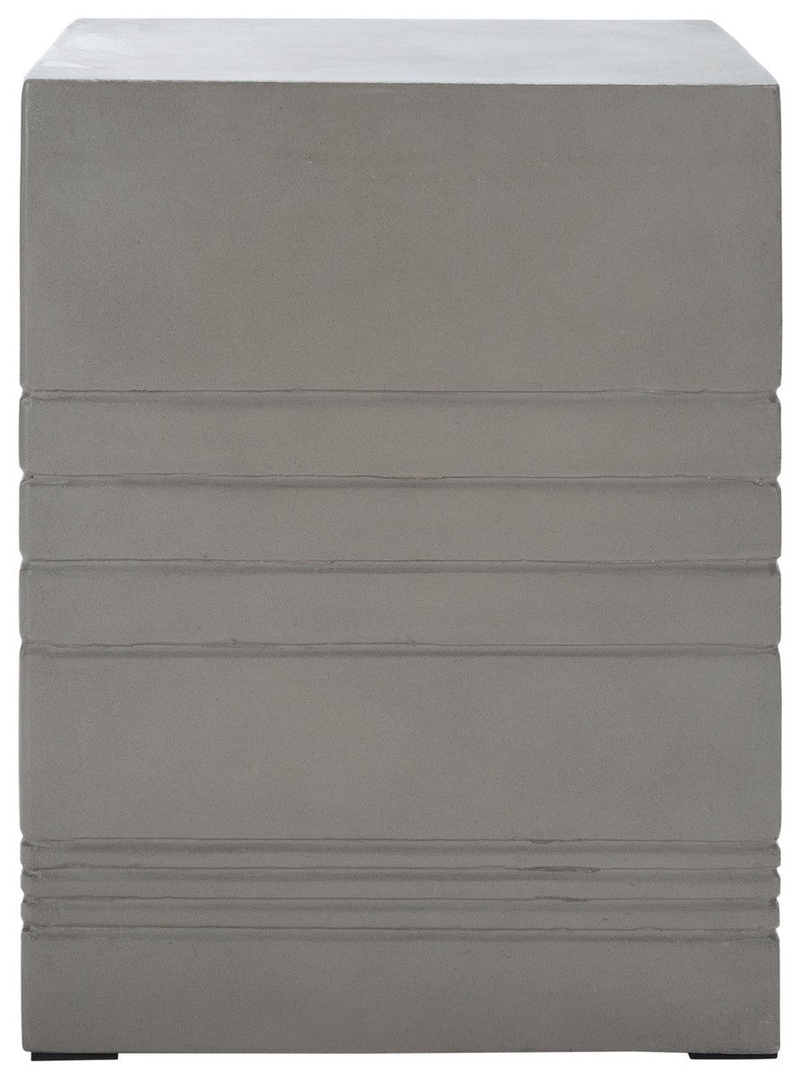 Outdoor sculpture for the modern minimalist, this Deidara Accent Stool makes a bold decorative statement. Deidara’s etched bands and rectangular cut-out bring unique visual intrigue to its grey concrete profile, making it a designer favorite in contemporary Zen gardens.