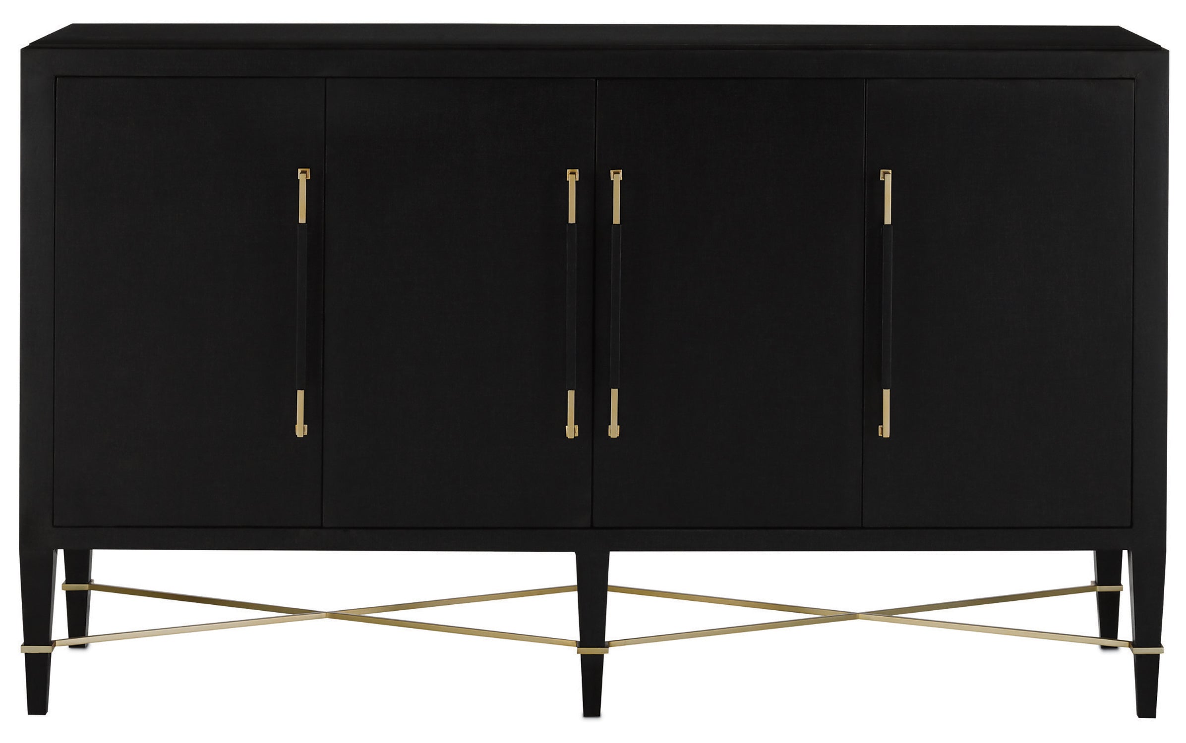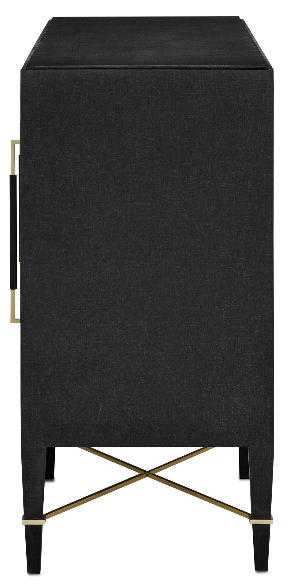 - Finish: Black Lacquered Linen/Champagne Metal