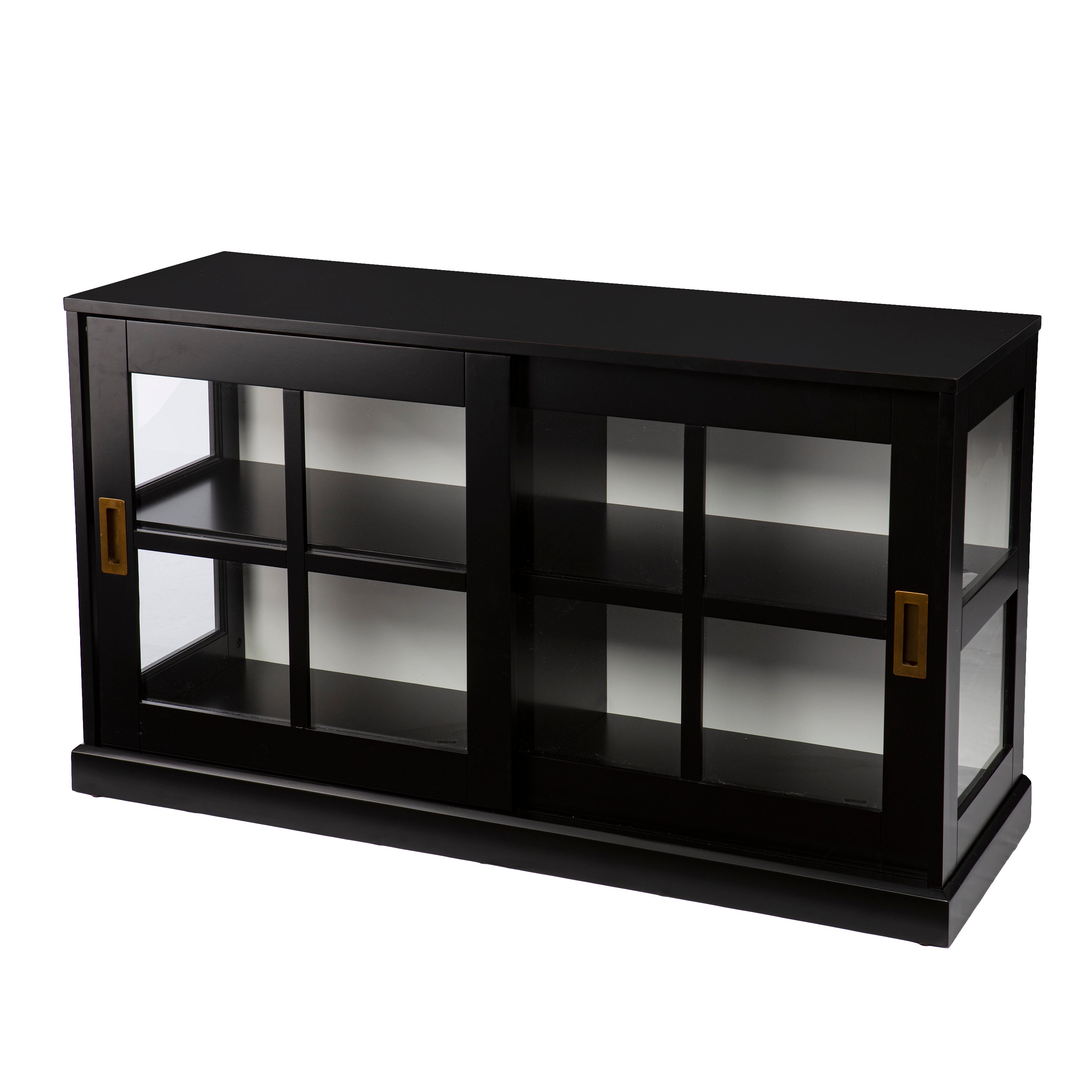 - Feature 3: Sliding glass doors allow easy access to shelves