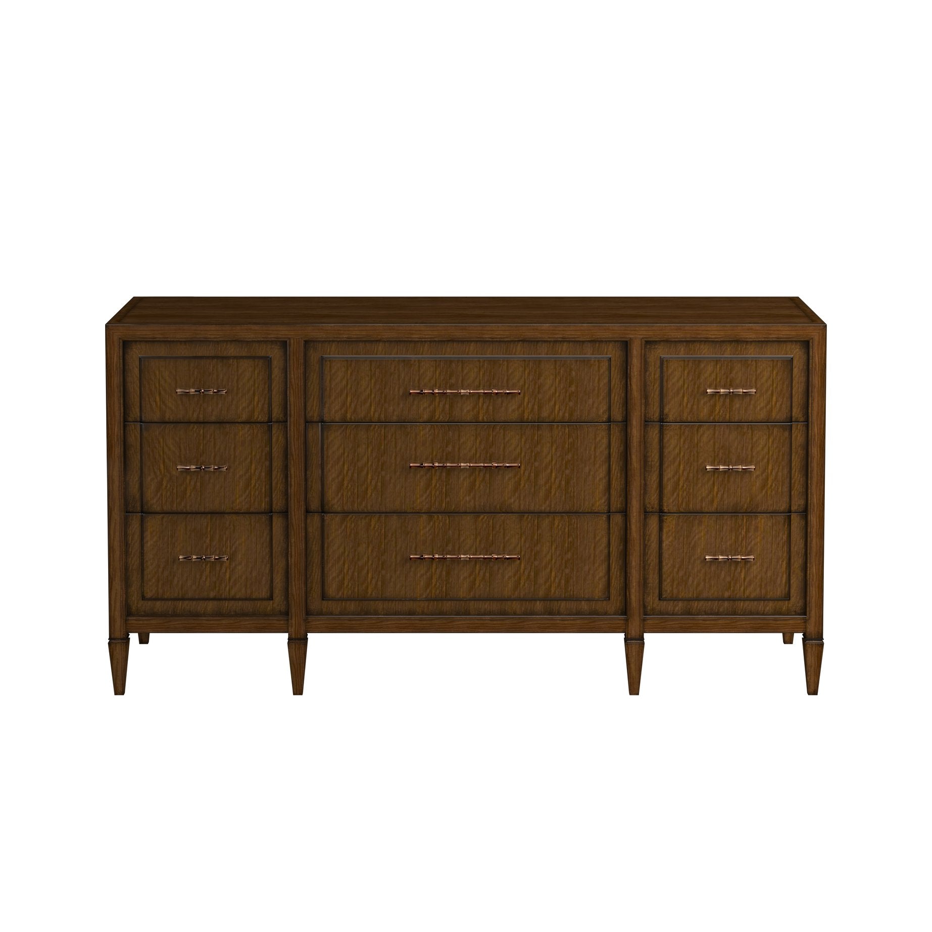 Eave Collection: A reinvention of 19th-Century English classics infused with Chinoiserie details. Collections features pieces finished in stunning clear quartered walnut veneer, mixed with selected items in Candy Apple Red, Black and Frosted Bronze bridging timeless elegance with modern sofphistication