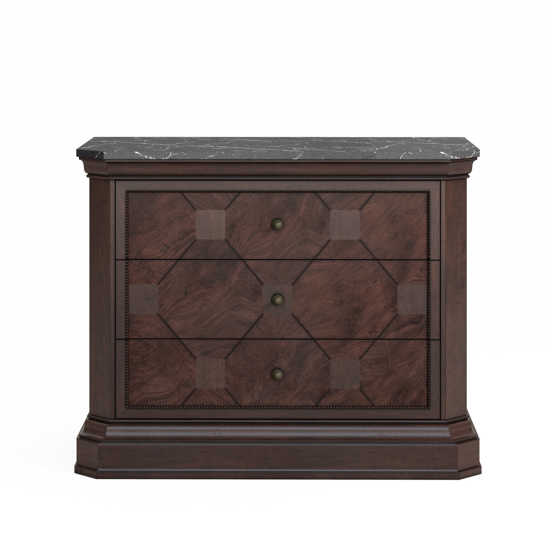 - Diamond veneer pattern on drawer fronts with beaded trim