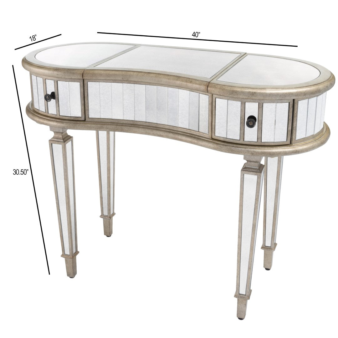 - Materials: Birch wood Solids; Antique Pewter Finish, MDF, Antique Mirror Glass, Hardware: Steel, Antique Gold Finish
