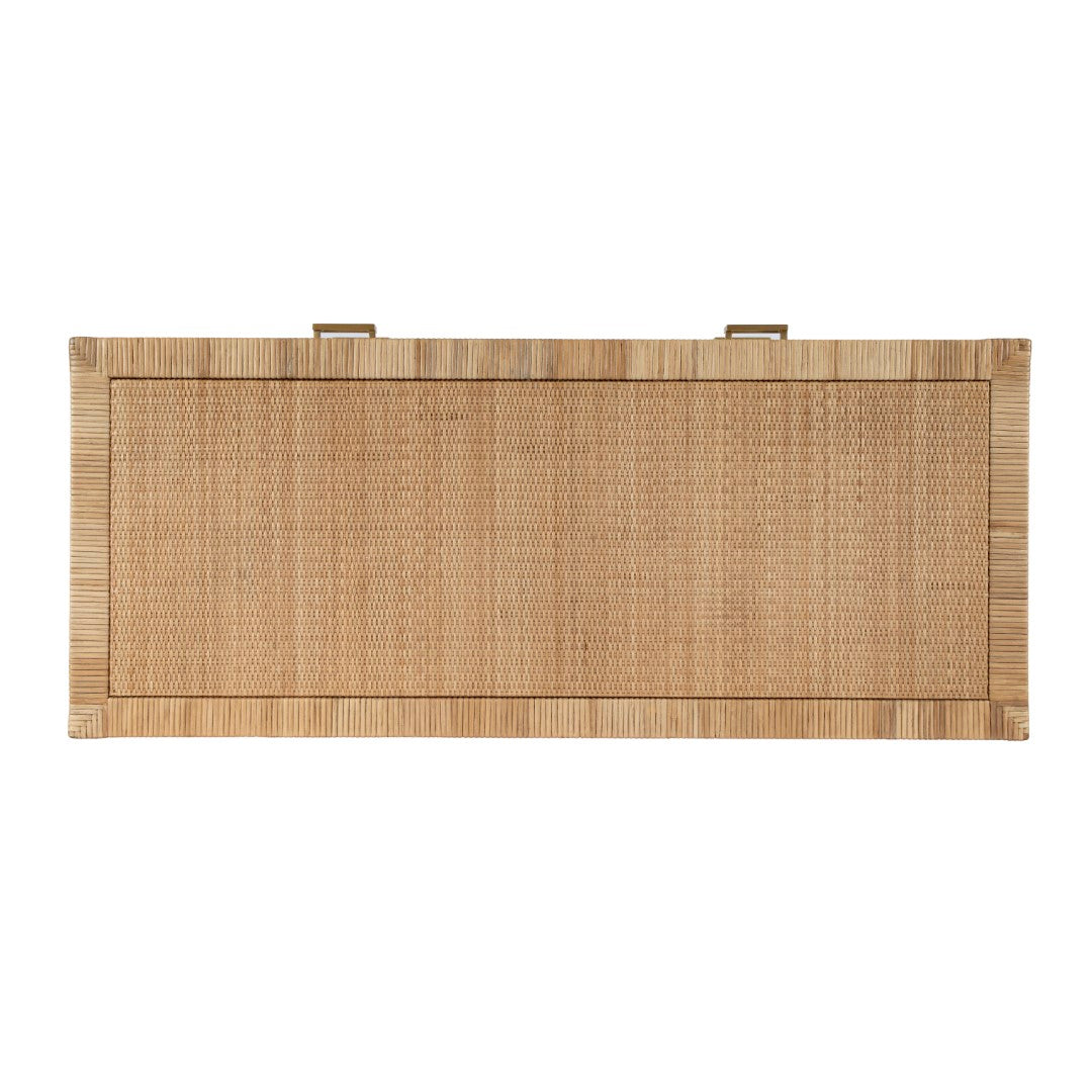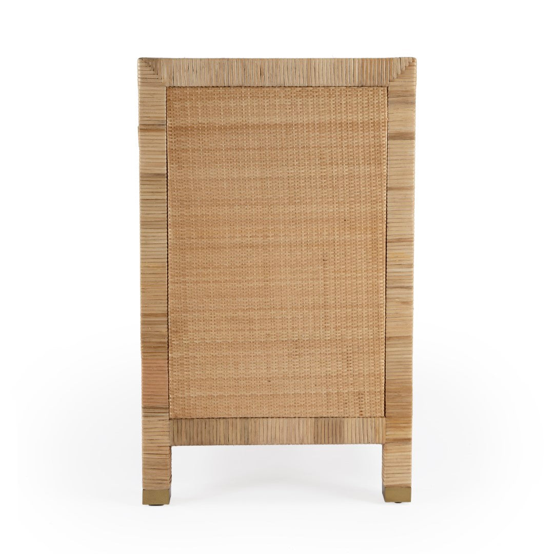 - Feature 1: Frame is solid hardWood and engineered Wood, hand-wrapped in woven raffia with beautiful aluminum flat-front drawer pulls finished in Gold. Also sits atop gold-finished aluminum feet.