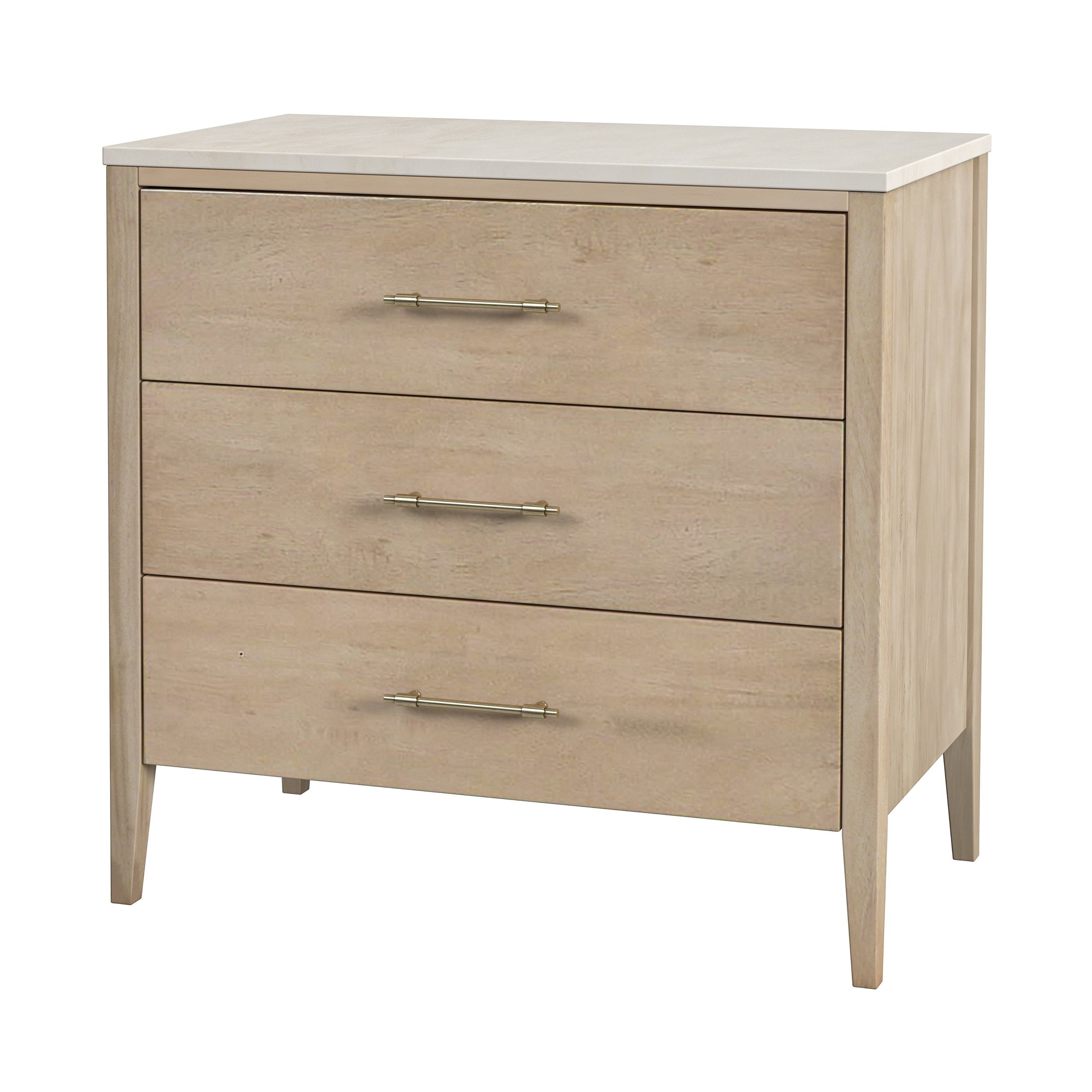 - Product Features (Construction Details): Features a java wood frame with Gamelina veneer on engineered wood drawer fronts and side panels and showcases mortise and tenon joinery, ball-bearing drawer glides and a polished marble top