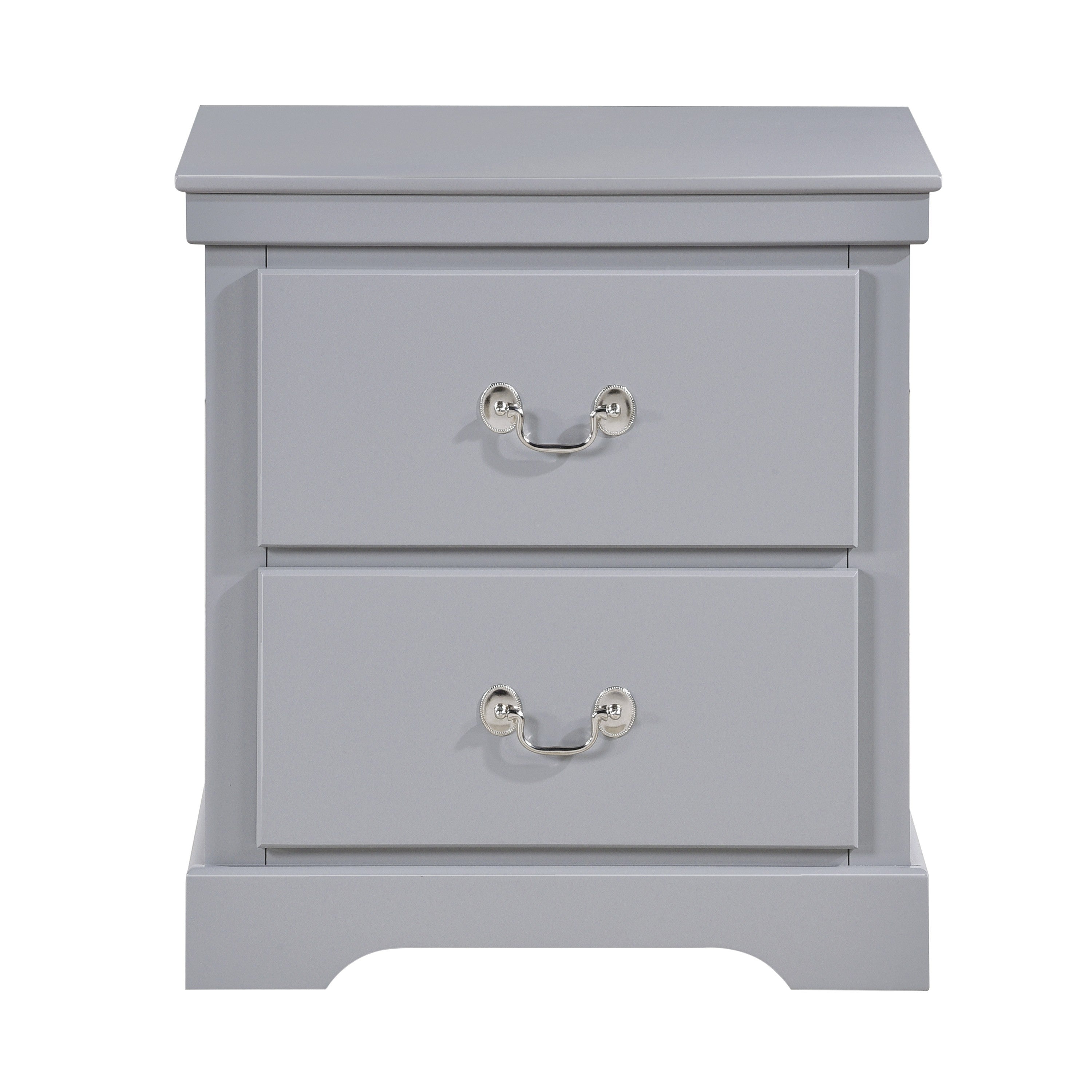 - Key Features: Two smooth-glide drawers for convenient storage of books, electronics, and bedside essentials; sturdy wooden construction for everyday durability; satin nickel bale and pull hardware for a refined classic look.
