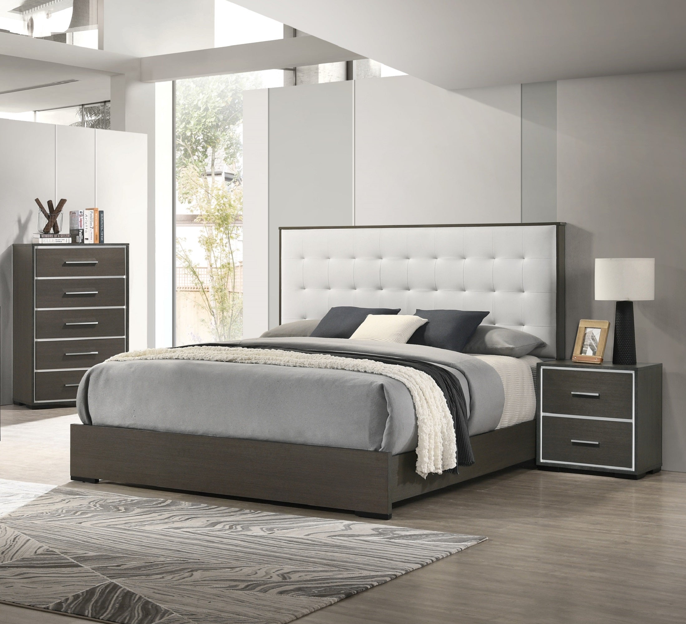 Enhance your bedroom with this contemporary 2-drawer nightstand that pairs modern chrome accents with a rustic gray finish for a clean, versatile look. Designed for everyday functionality, it offers spacious storage, a streamlined silhouette, and durable construction—perfect for small spaces or as part of a coordinated bedroom set.