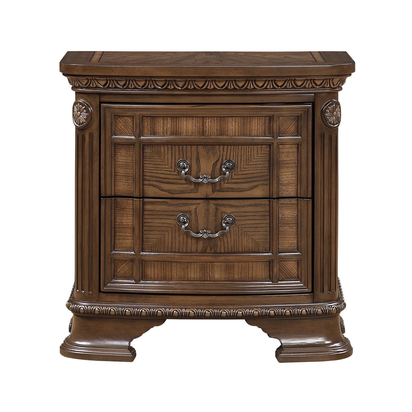 Bring timeless elegance and practical storage to your bedroom with this dark brown traditional nightstand. With carved detailing, a rich finish, and two smooth-operating drawers—one cedar-lined—this bedside cabinet combines classic style with durable construction to keep essentials organized and protected.
