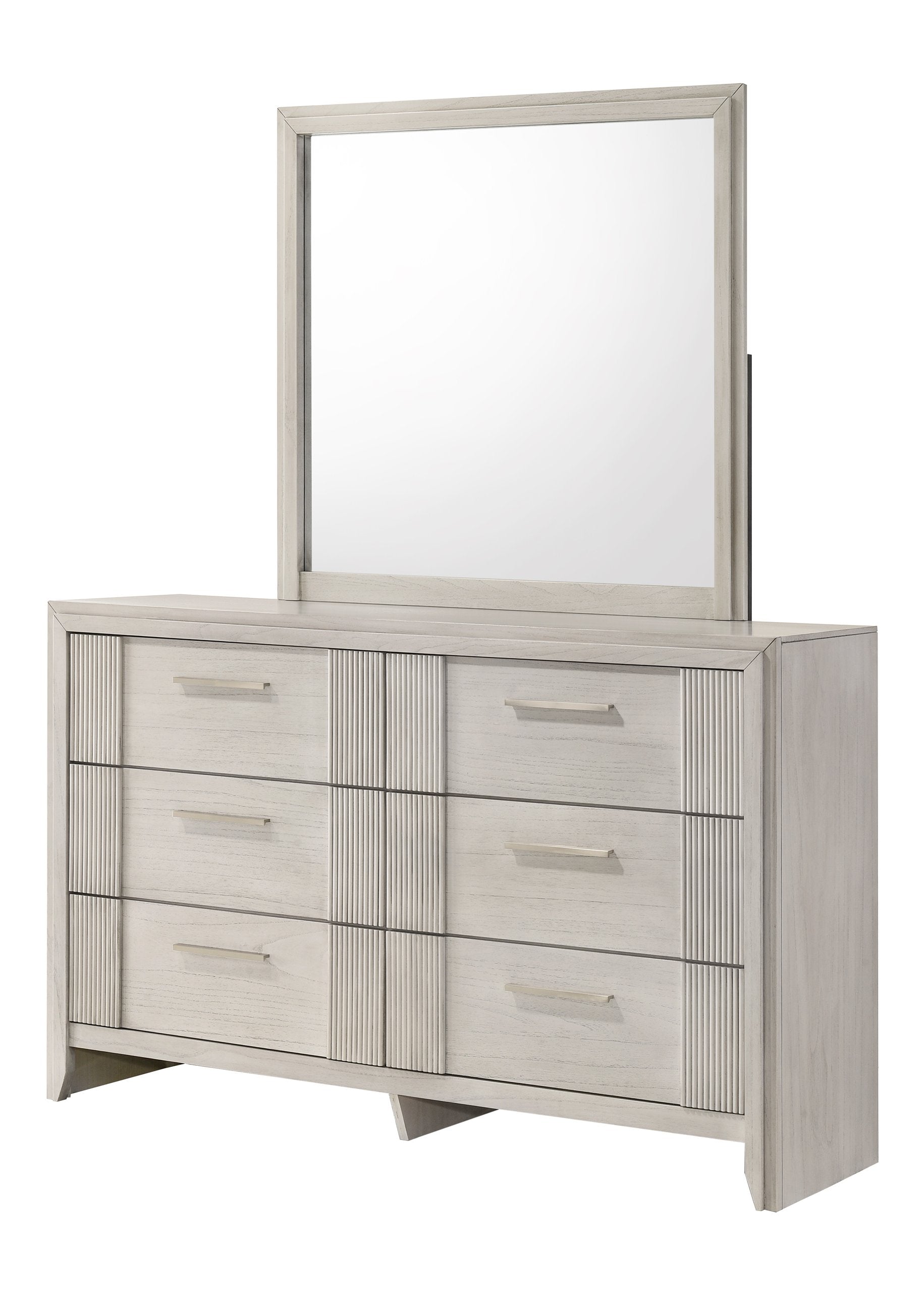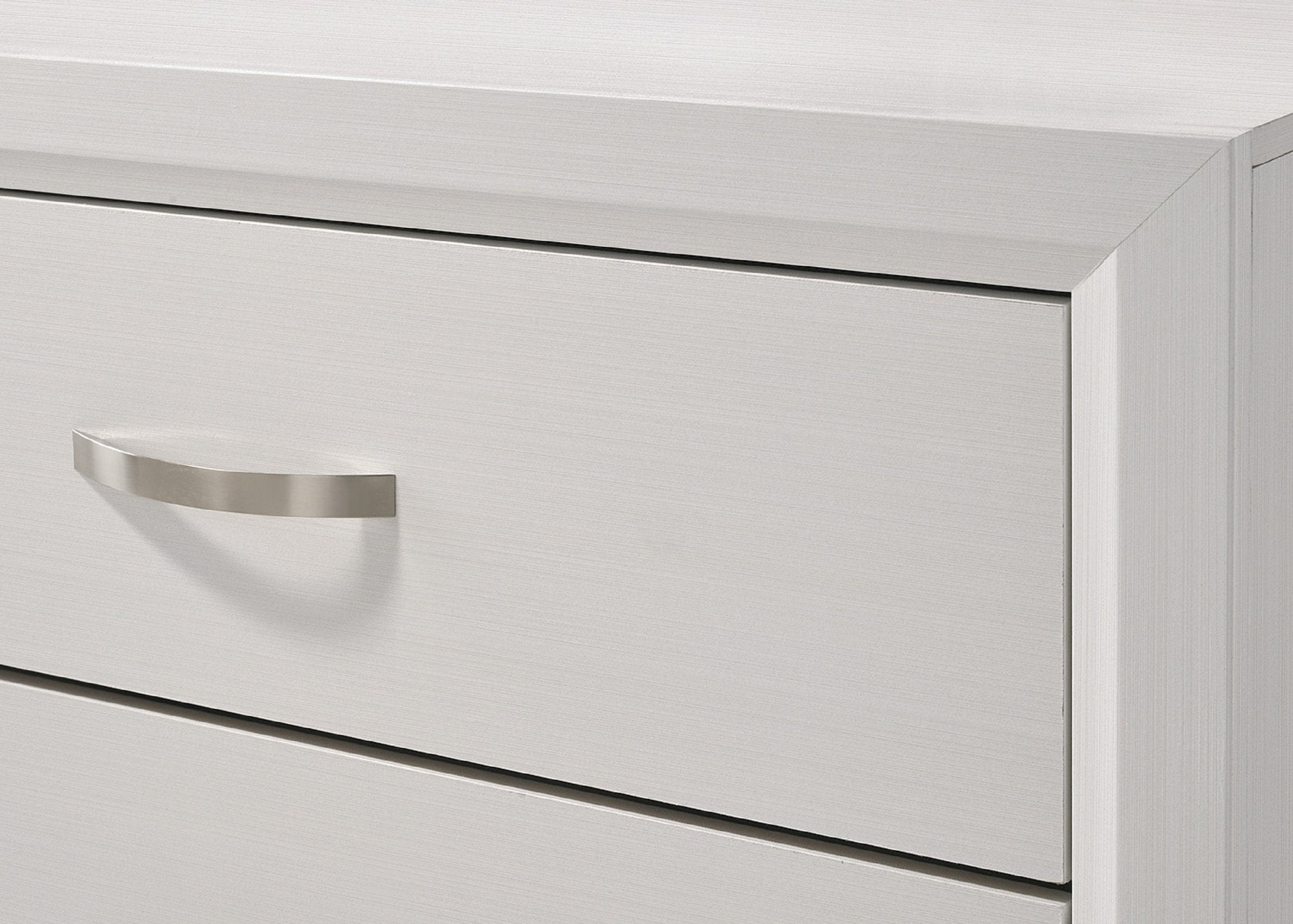 - Mist white finish with a clean, contemporary silhouette that complements a range of bedroom styles.