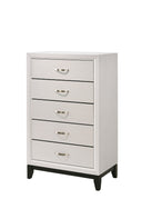 Add modern elegance and practical storage to your bedroom with this contemporary 4-drawer tall chest in a mist white finish. Its clean lines and smooth top surface suit minimalist or transitional decor, while four roomy drawers provide organized storage for clothing, linens, and everyday essentials. Built for easy assembly and everyday use, this piece balances style and function.