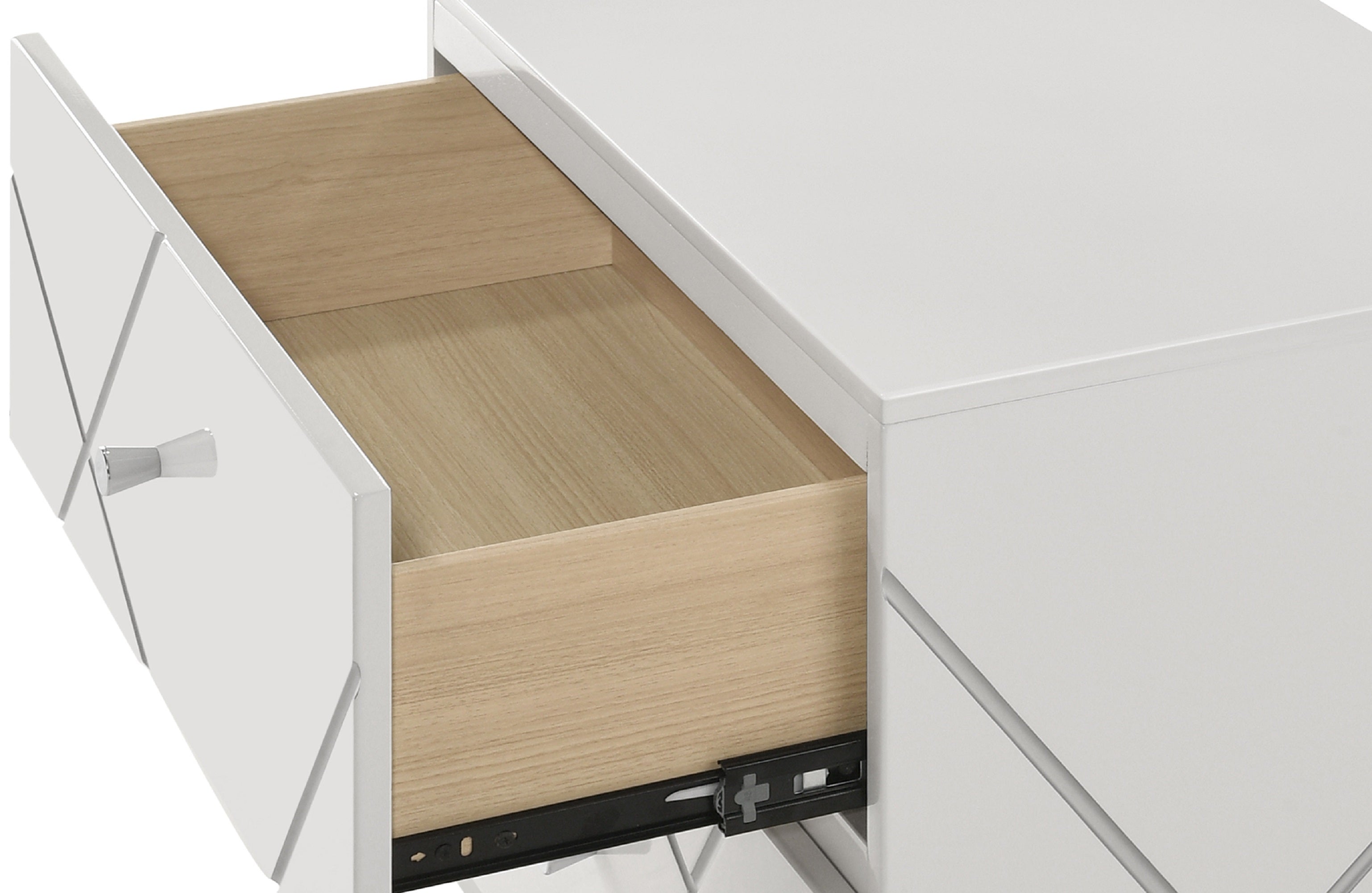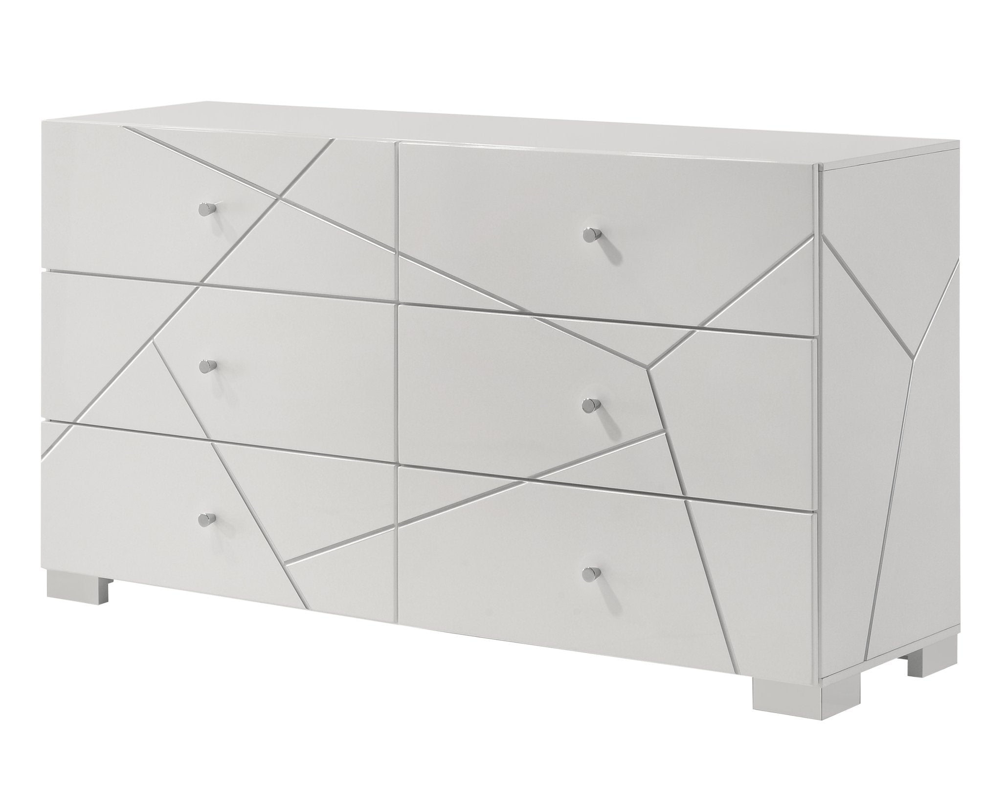 Elevate your bedroom or living space with a contemporary four-drawer chest that combines bold geometric styling and a pristine high-gloss white finish. This piece delivers streamlined storage with eye-catching hardware and clean lines, making it ideal for modern, minimalist, or transitional interiors. Built to balance form and function, it organizes clothing and essentials while serving as a striking focal point.