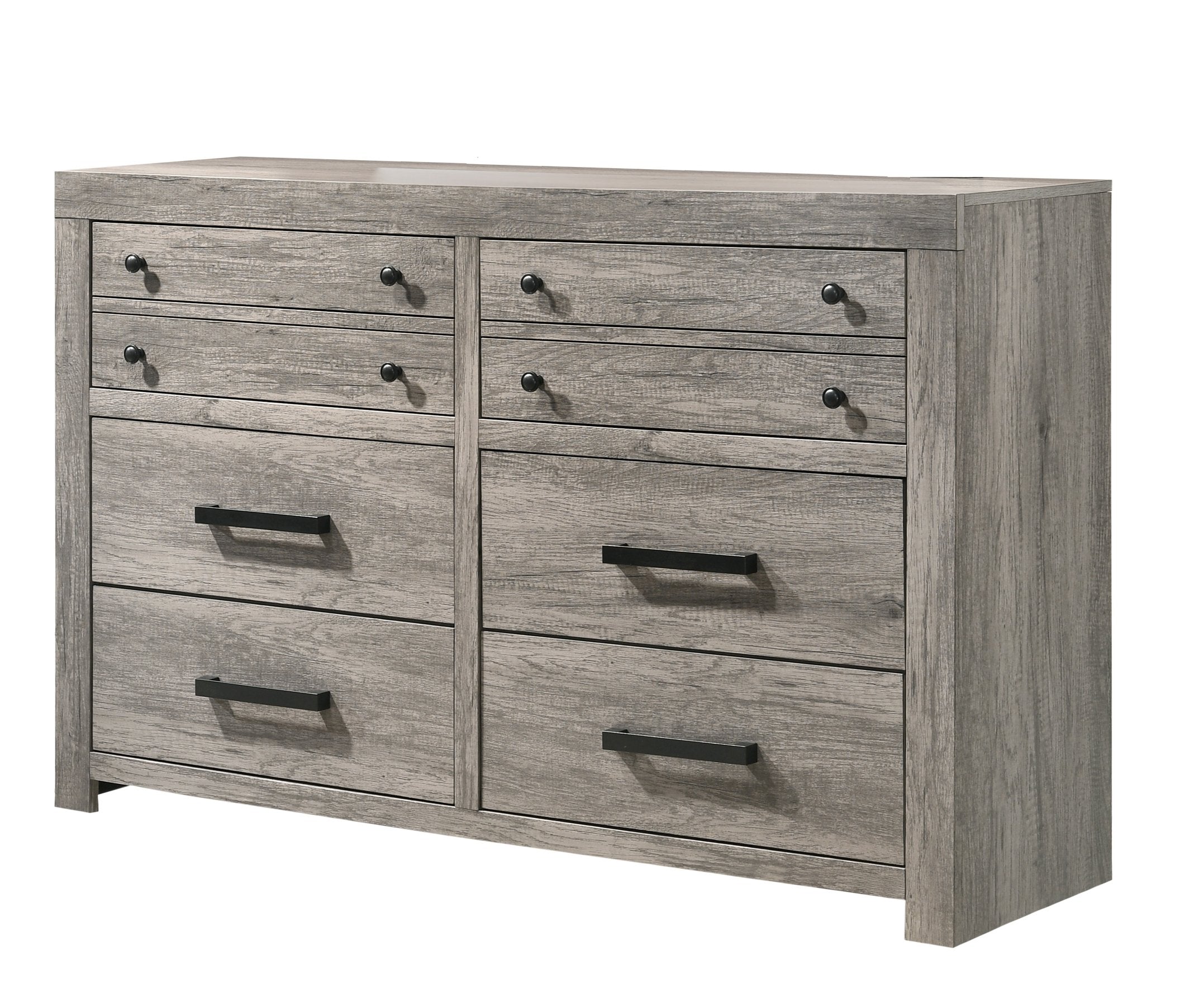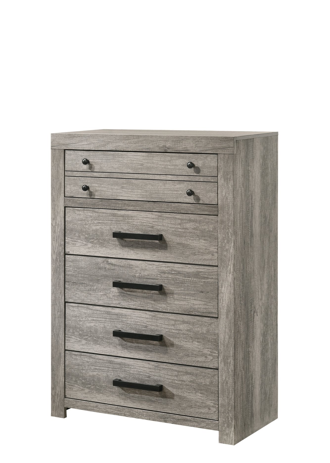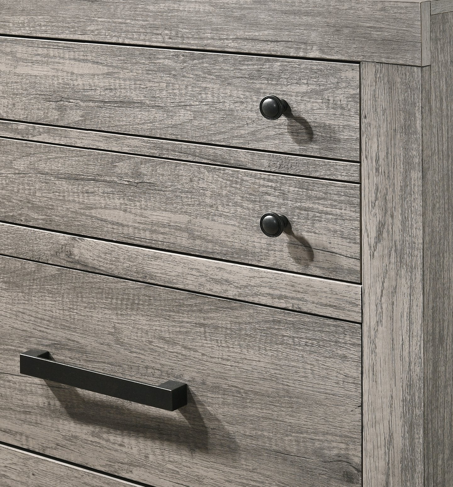 Bring rustic charm and streamlined storage to your bedroom with this tall five-drawer chest. Finished in weathered gray with subtle metal handles, it blends farmhouse character with contemporary simplicity—perfect for organizing clothing, accessories, and linens while enhancing your room’s décor.