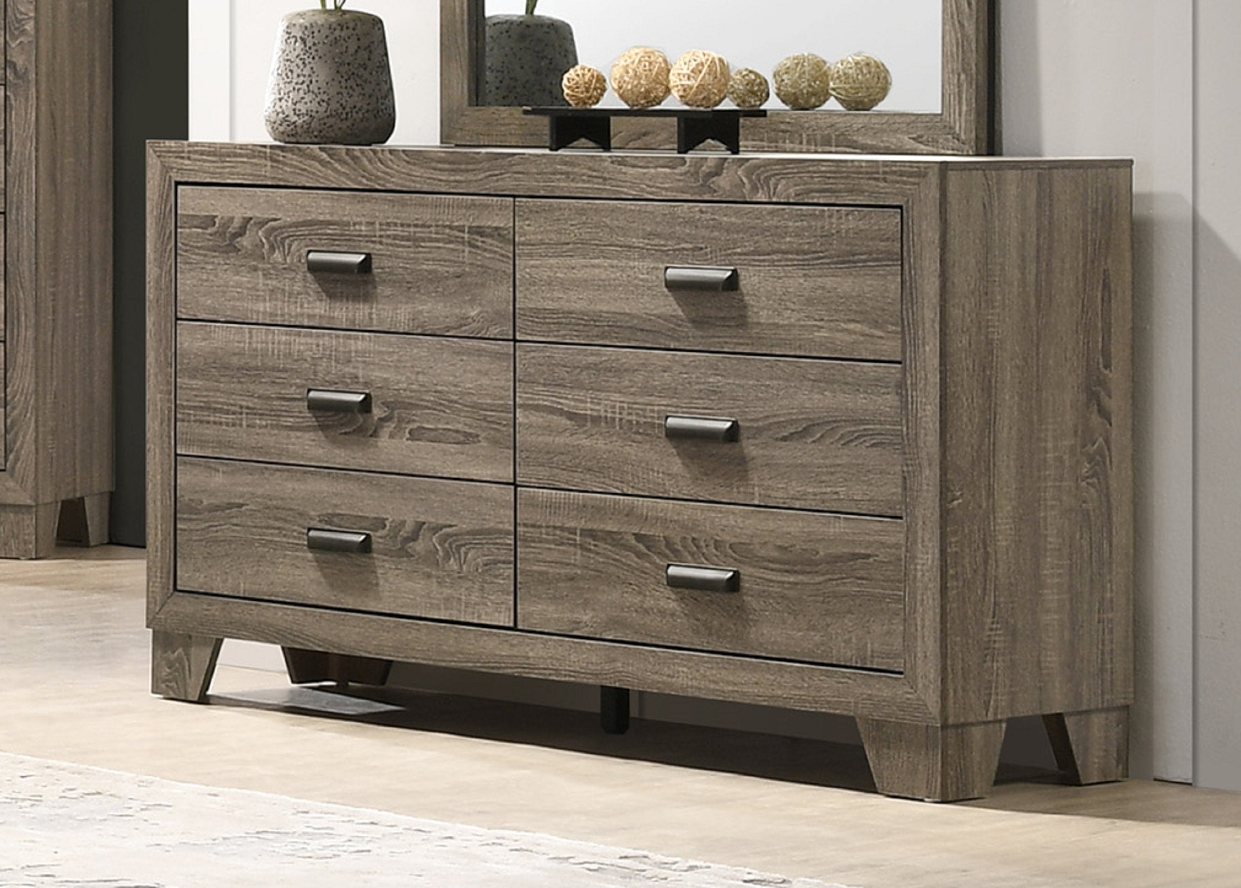 Bring rustic charm and practical storage to your bedroom with this contemporary 6-drawer dresser. The weathered gray finish and clean, transitional silhouette create a cozy yet modern focal point, while six roomy drawers keep clothing and bedside essentials neatly organized. Built with metal hardware and center-glide construction, this piece balances durable function with understated style.