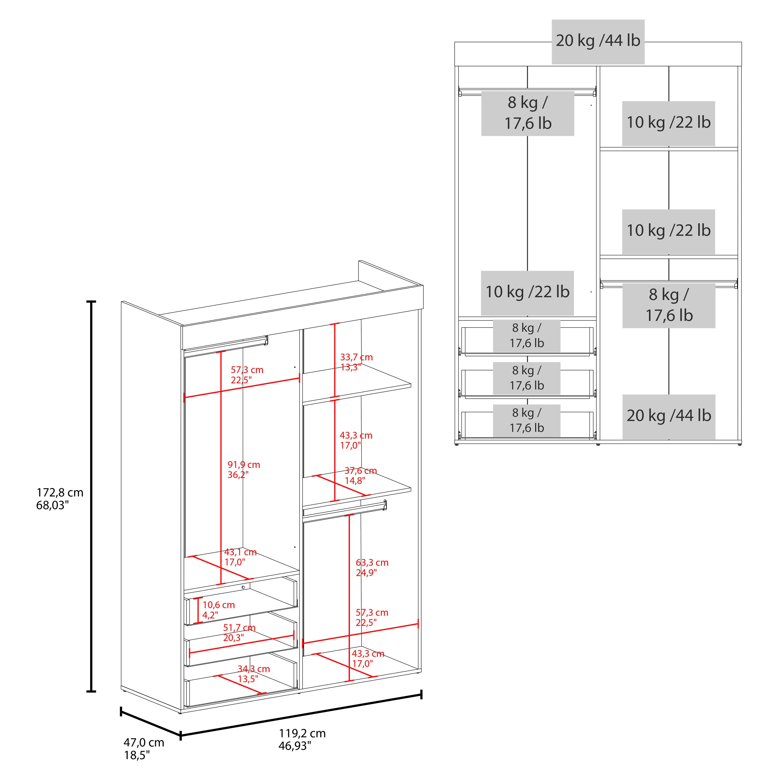 Keep your wardrobe organized and stylish with this versatile freestanding armoire. Designed for adaptable storage, it combines hanging space, shelving, and drawers in a clean, contemporary silhouette—ideal for bedrooms, dressing areas, or walk-in closets that need a polished, all-in-one solution.
