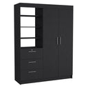 - Storage Configuration: Double-door cabinet with two internal hangers for garments plus three 3-tier shelves ideal for displaying accessories or folded items