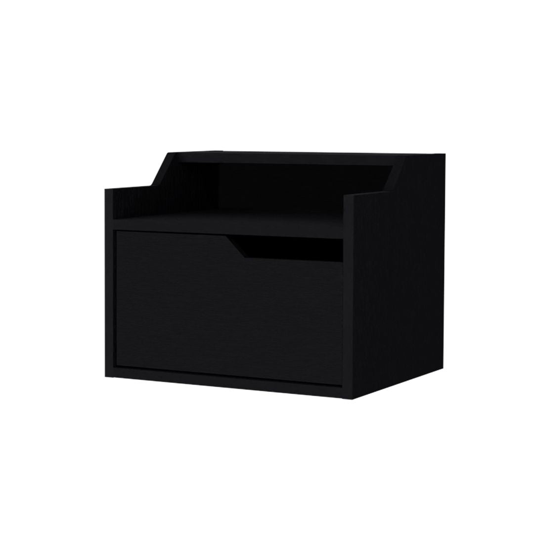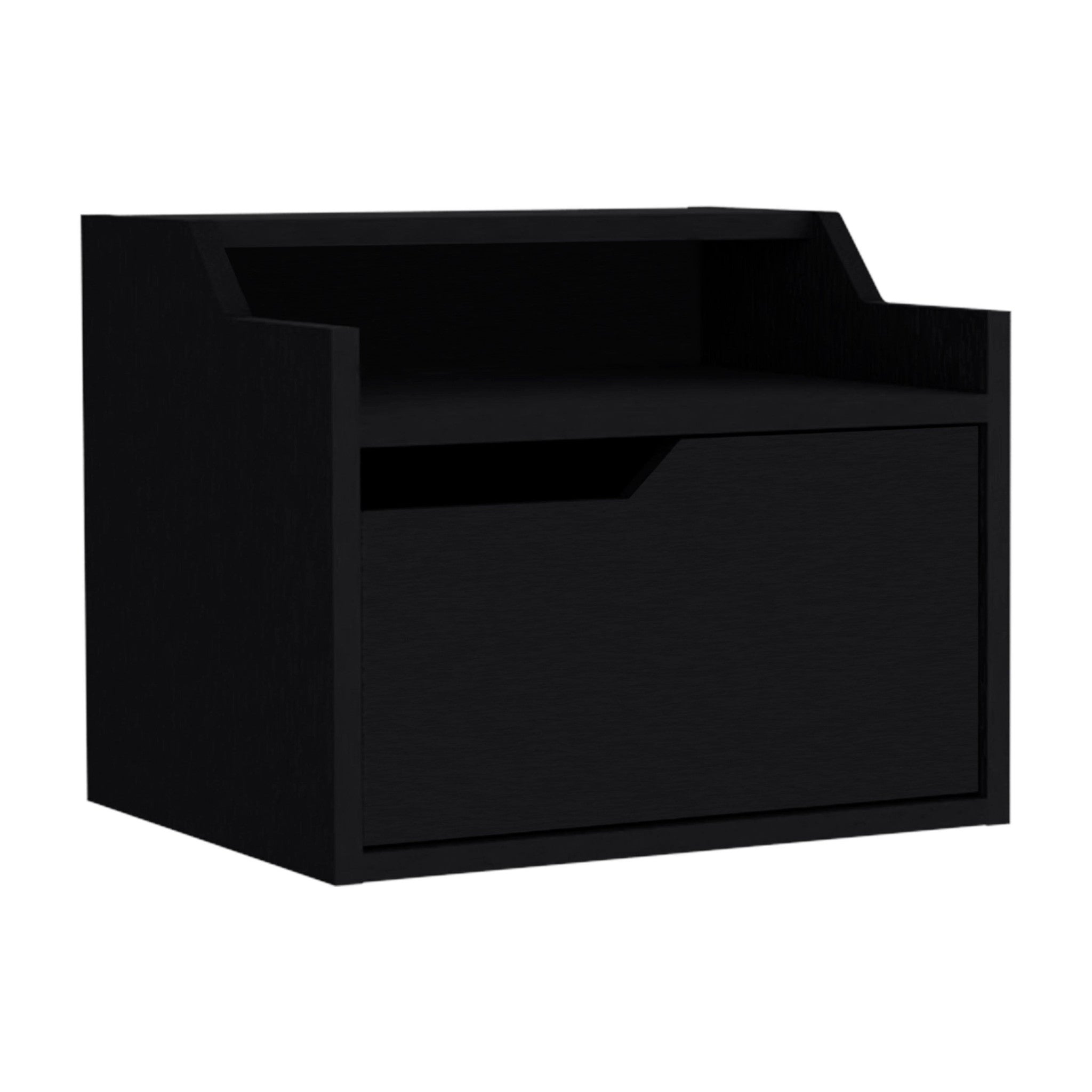 - Modern and unique in design, this floating shelf nightstand requires wall mounting and does not touch the ground.