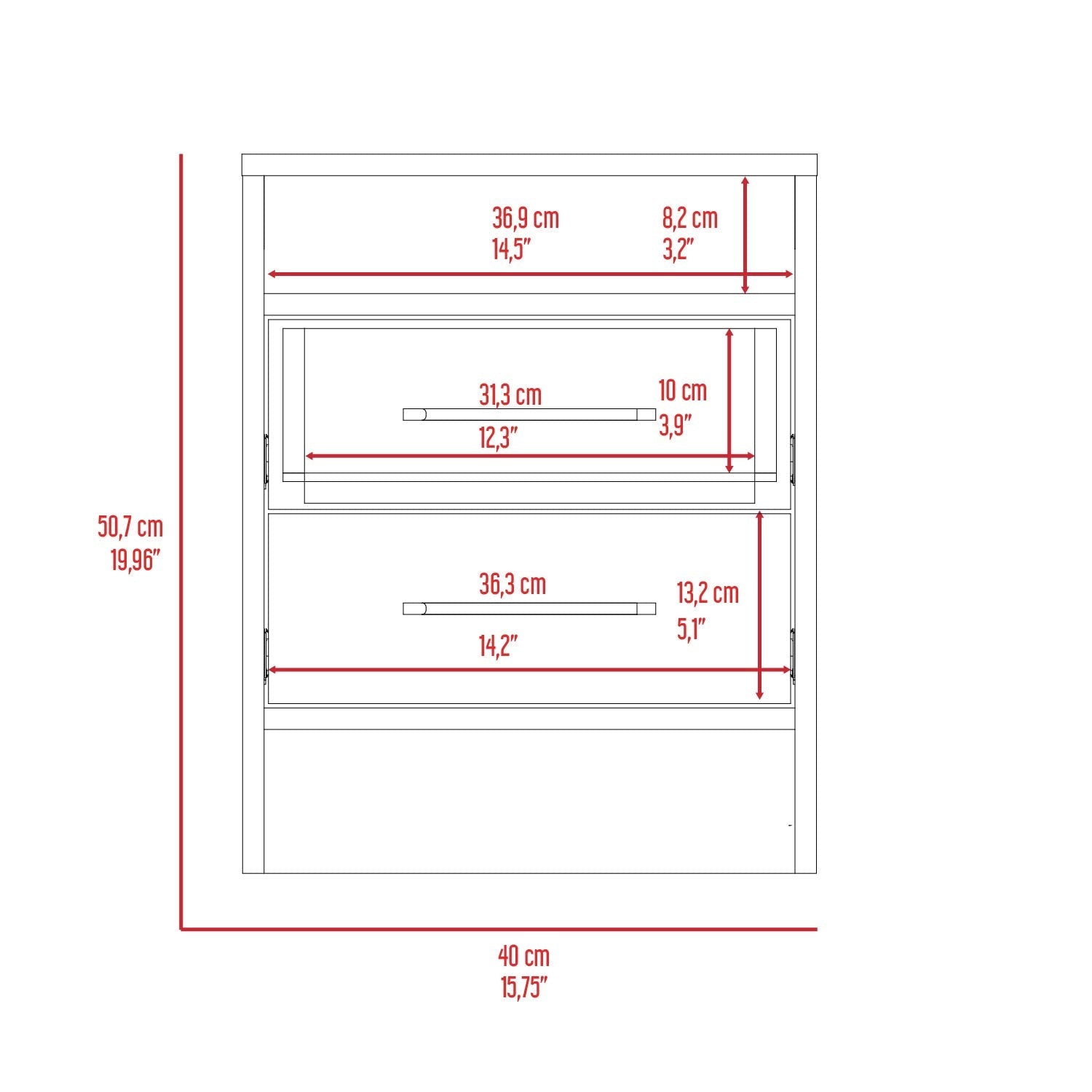 - Modern style nightstand with a sleek rectangular shape and a chic oak finish.