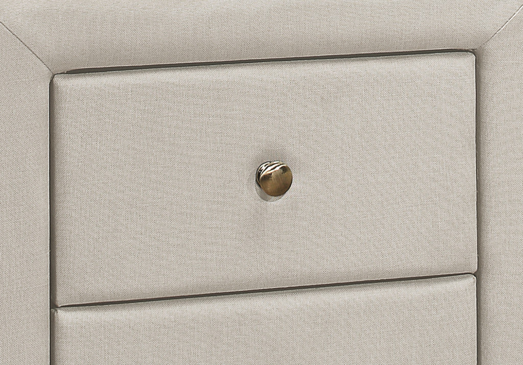 - Unique minimalist and chic upholstered linen blend nightstand.