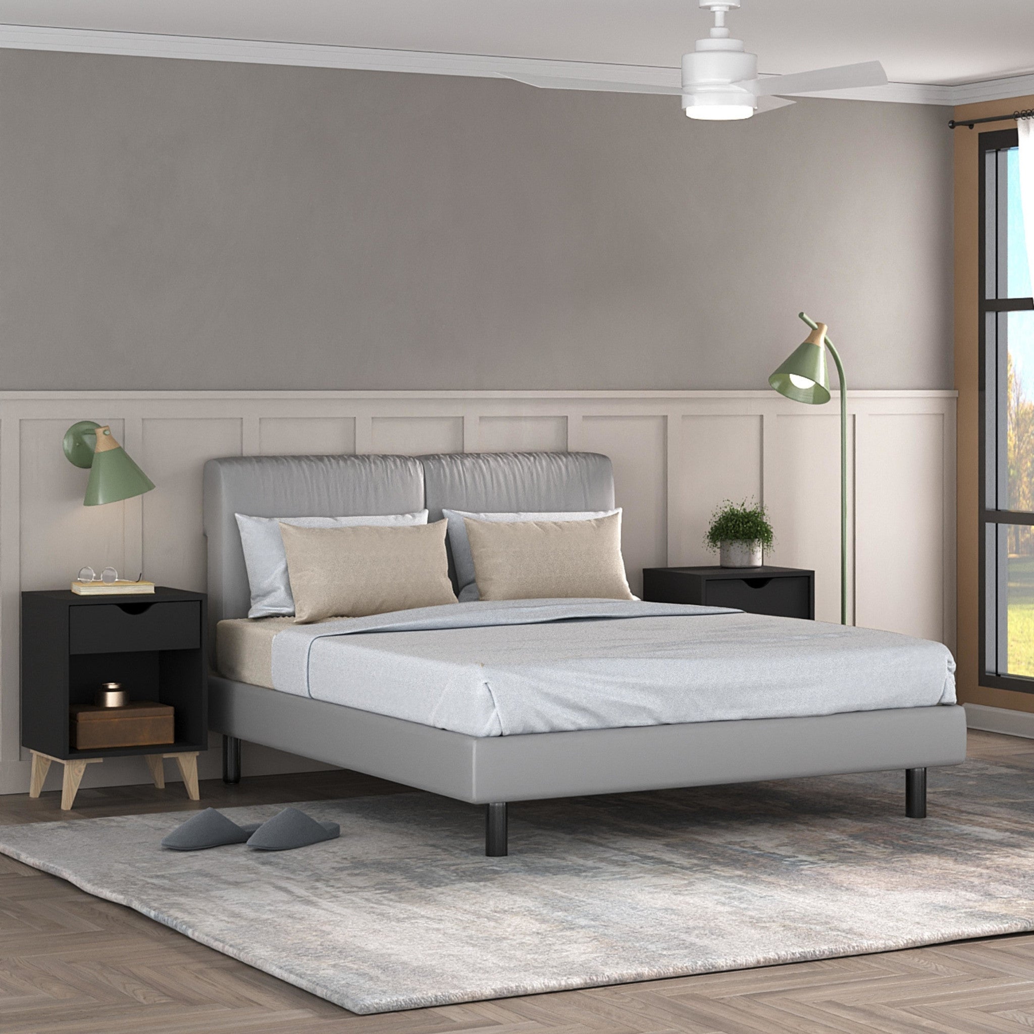 - Minimalist style nightstand in black that is offset nicely with natural color legs.
