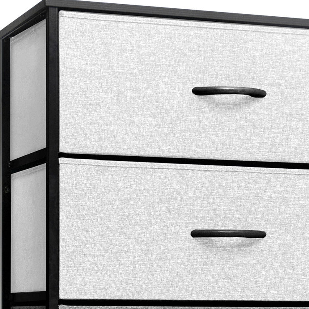 - Material Breakdown: Sturdy Steel Frame, Wood Top, Easy Pull Fabric Bins, Wood Handles
