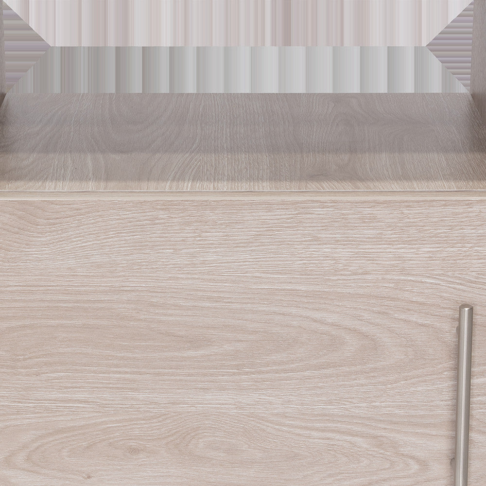 - Modern style nightstand with a gray manufactured wood frame and metal handle/accent for a contemporary look.