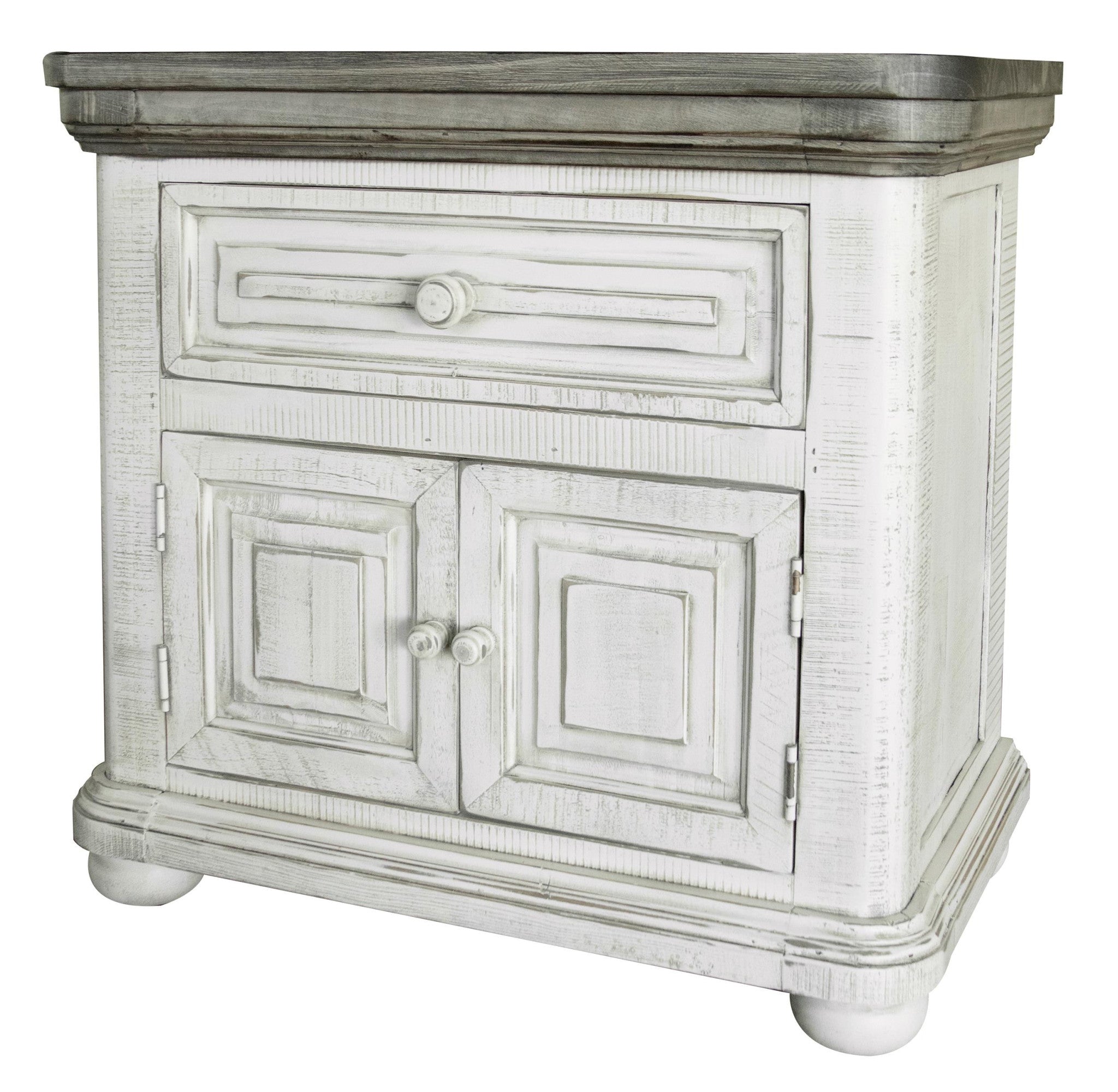 - Give your bed the perfect companion with this two toned night stand. Featuring a picture framed drawer and two doors, you'll have plenty of space to keep your favorite books or jewelry without cluttering the room.