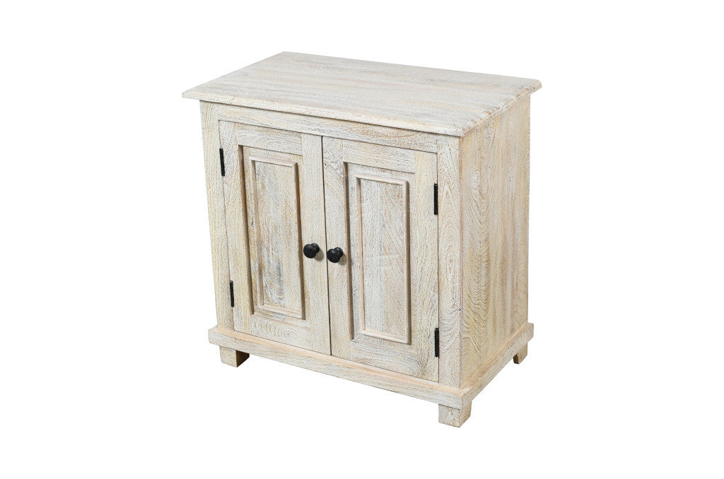 - Features two doors with wood scoring and rub through distressing for a unique look.