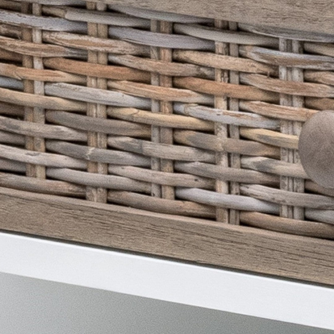 - Features high quality construction crafted from solid wood and wicker with a purposefully rustic and distressed finish.