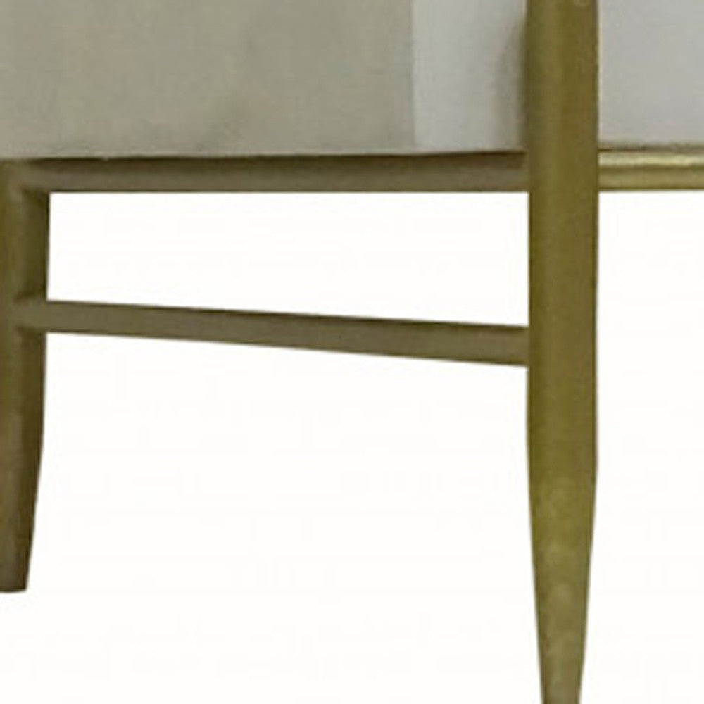 - Raised off the ground with golden brass finished feet that give this piece a mid-century modern vibe.