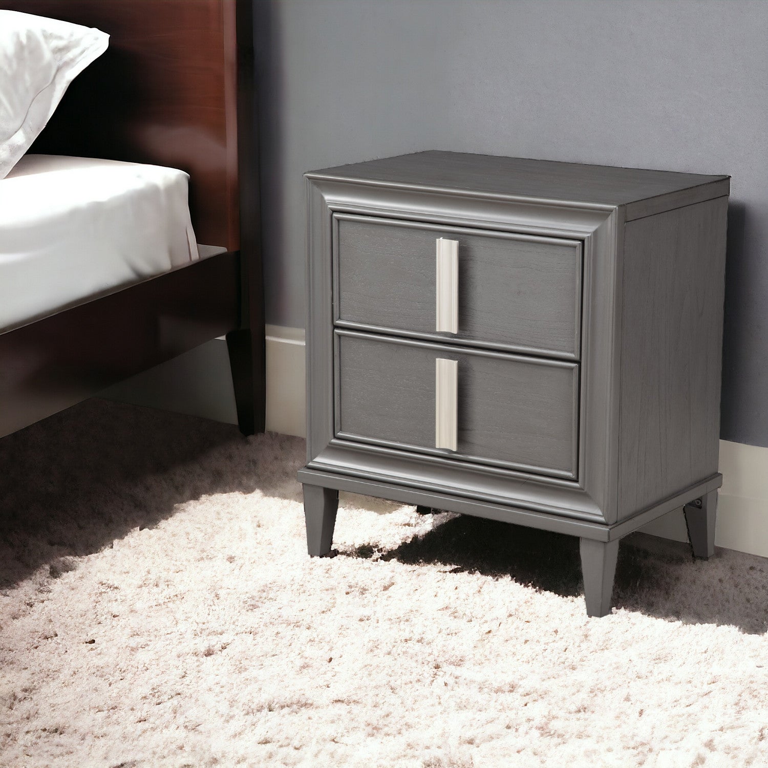 - Contemporary design with dark gray and silver accents including a contemporary drawer pull.