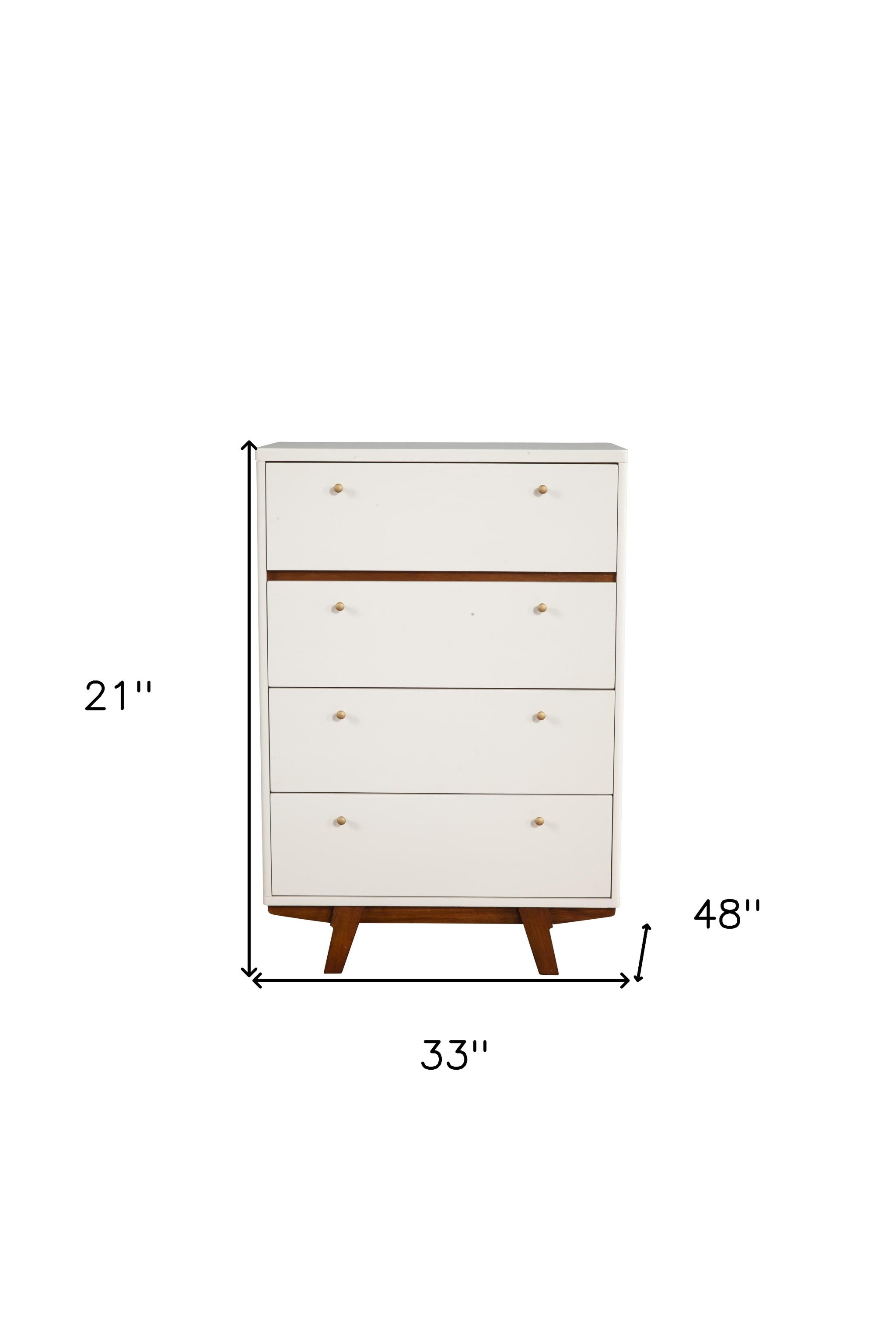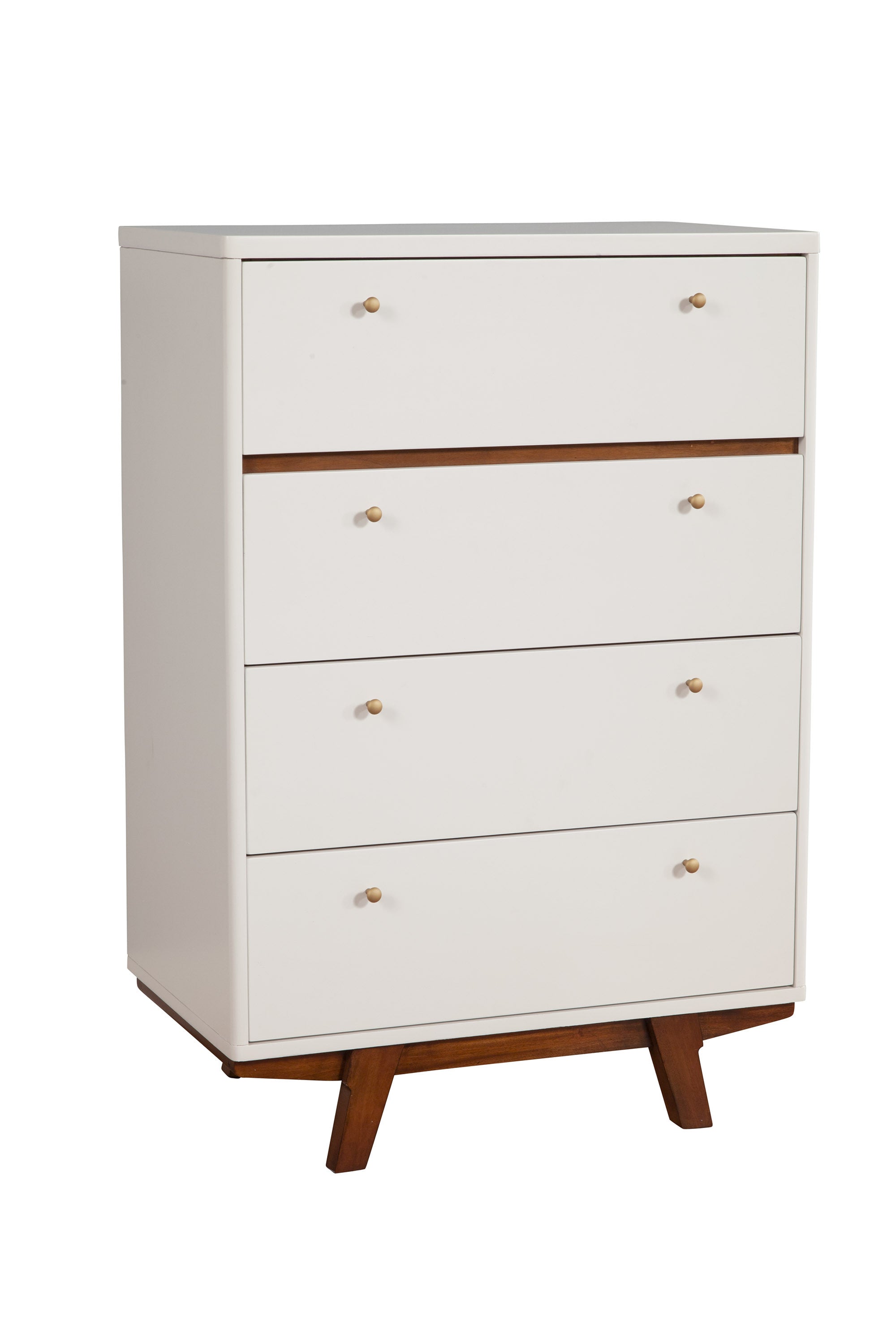 - Mid-Century Modern White and Brown 4 drawer chest / dresser.