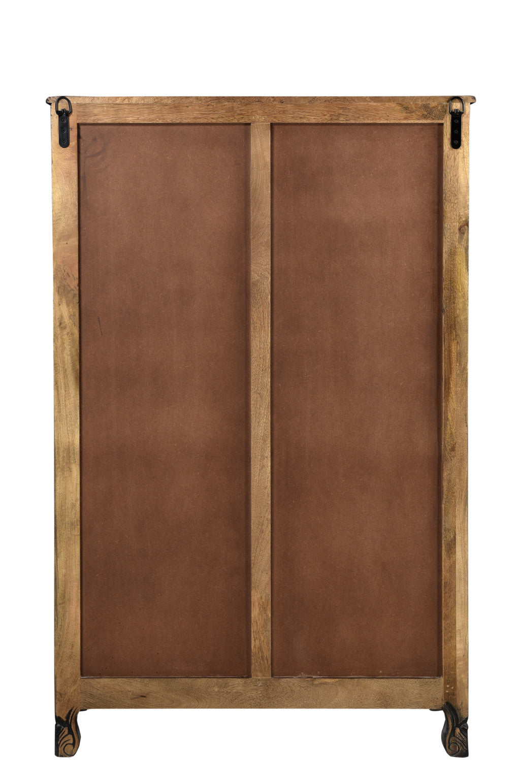 - Intricately hand-crafted/carved floral, solid wood dresser in a distressed black finish.