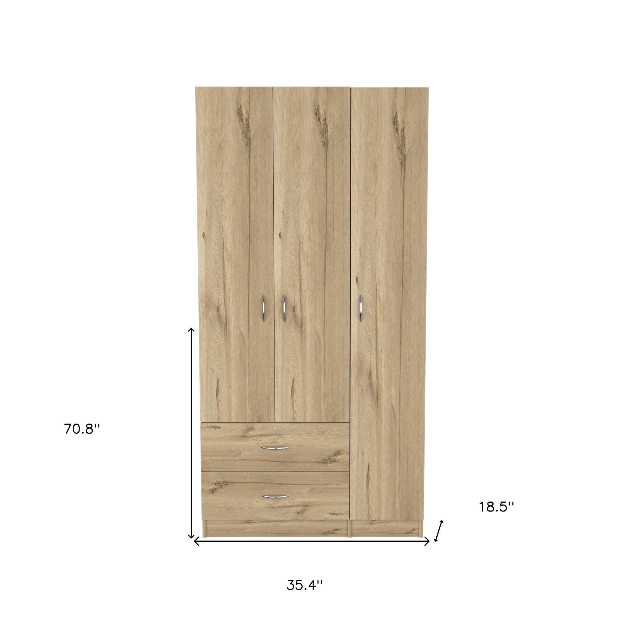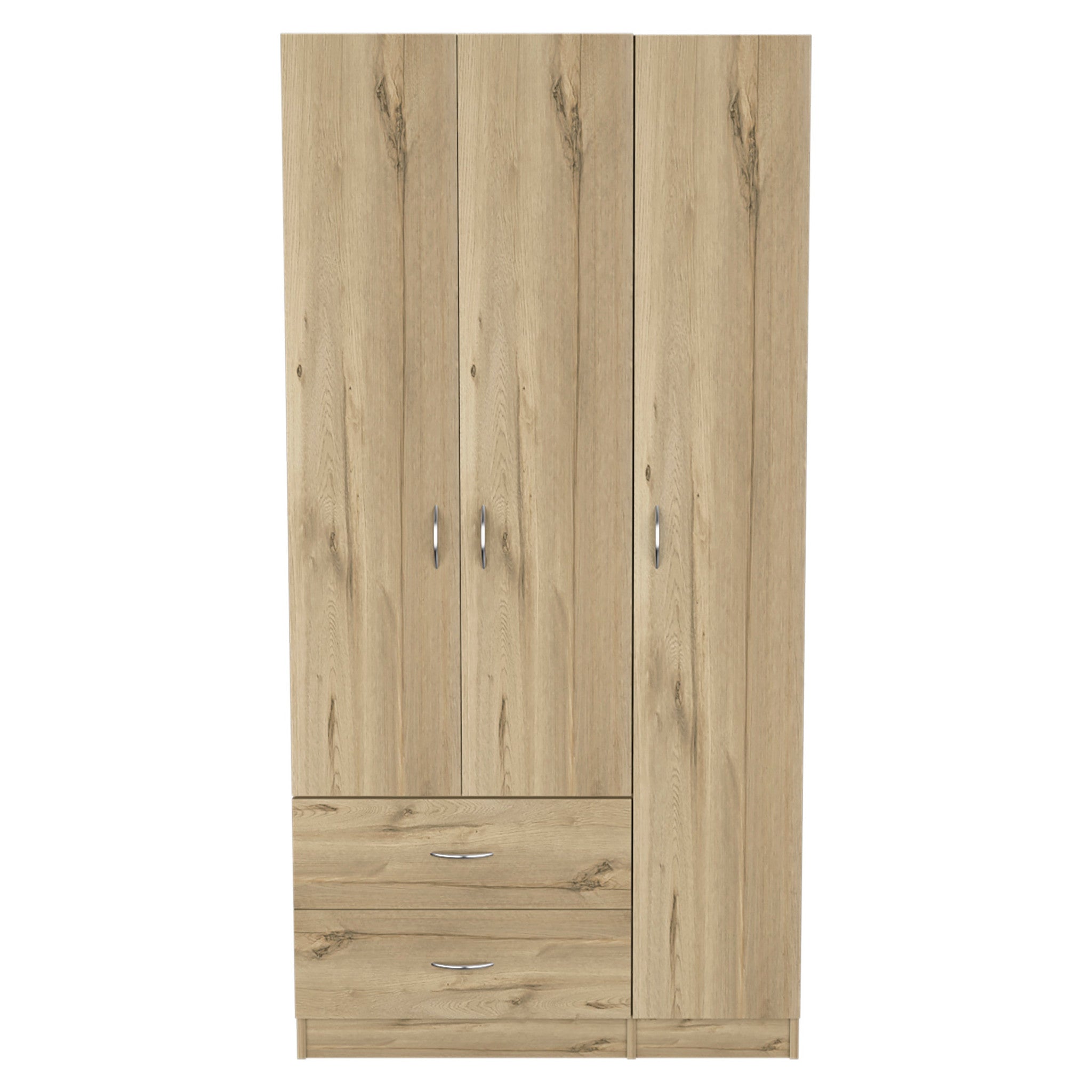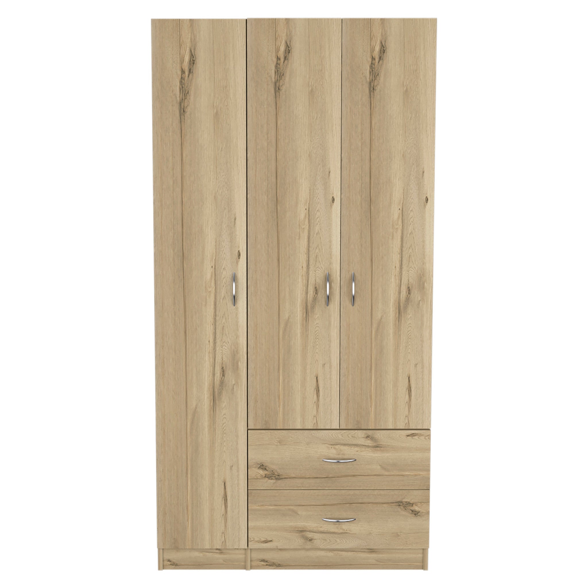 - This dresser include both dresser drawers and wardrobe doors that open to reveal shelves or a space to hang clothes.