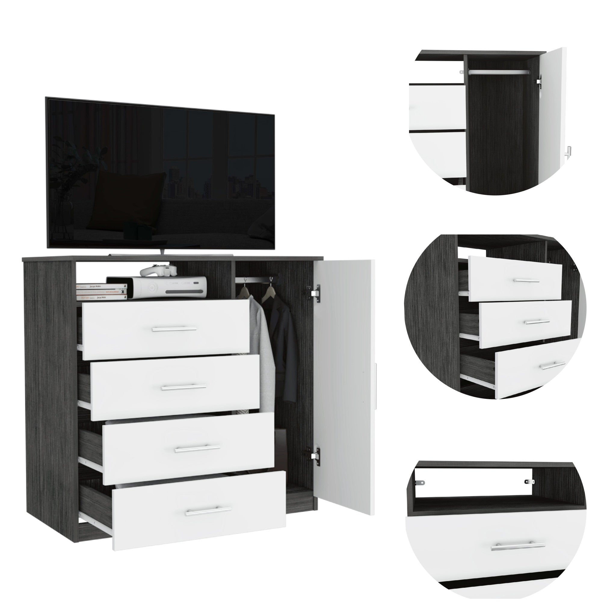 - Includes 4 drawers for hidden storage and organization of your essentials.