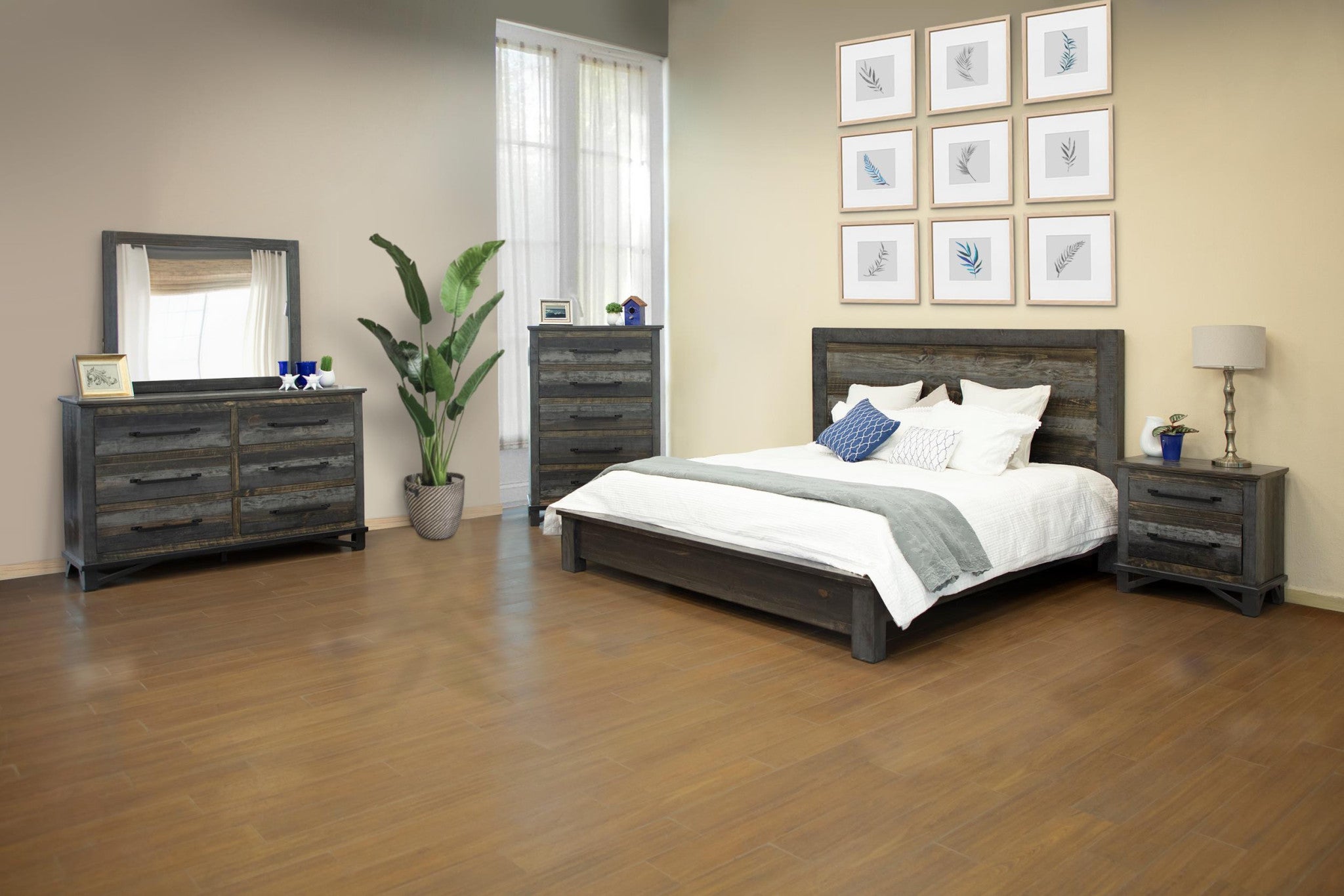 - Six-step, hand-painted finish in gray and brown tones for a "reclaimed wood" look.