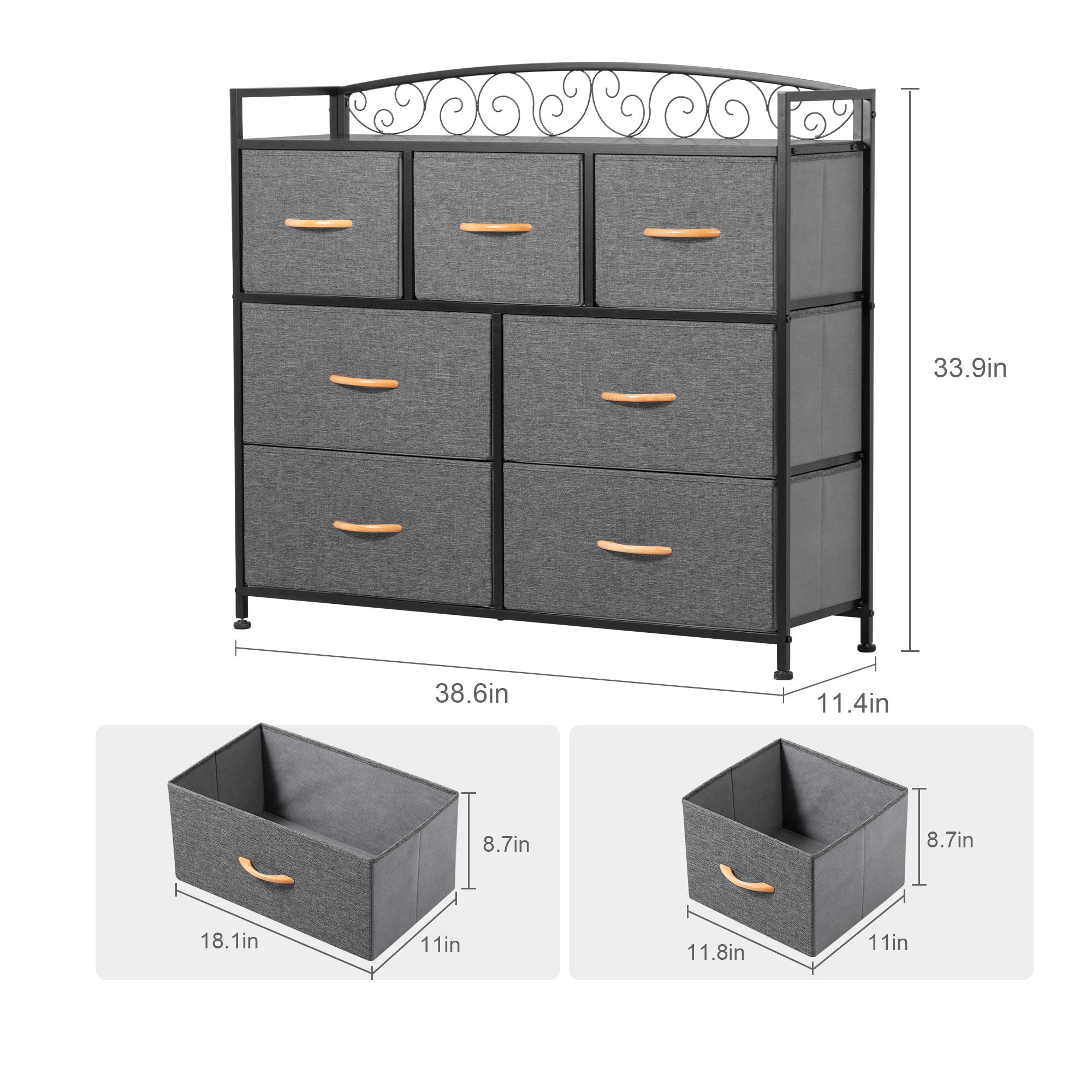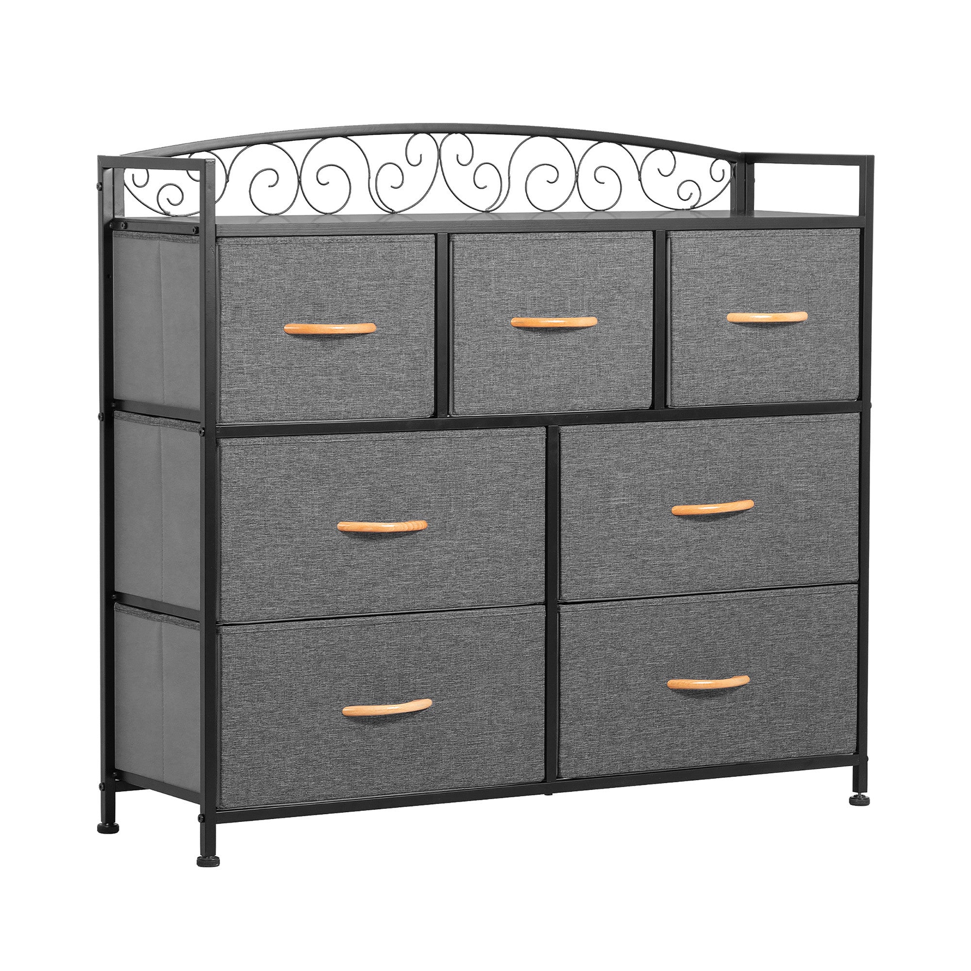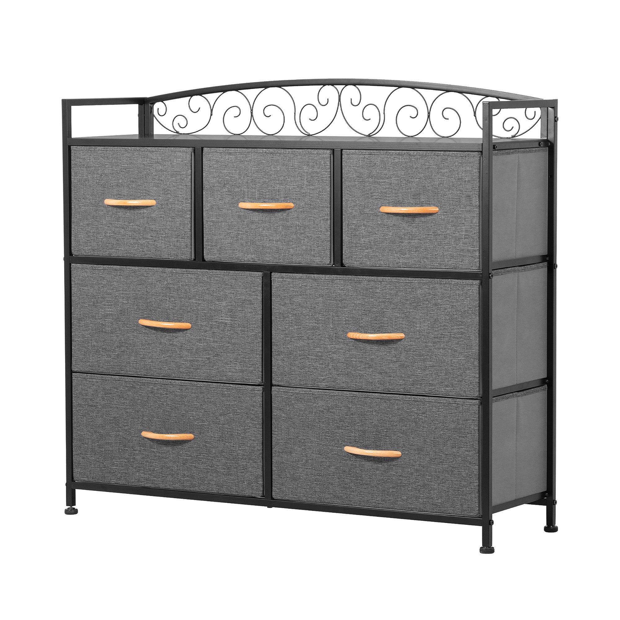 - Material Breakdown: Sturdy Steel Frame, Wood Top, Easy Pull Fabric Bins, Wood Handles