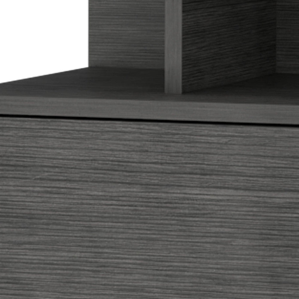 - Modern and unique in design, this floating shelf nightstand requires wall mounting and does not touch the ground.