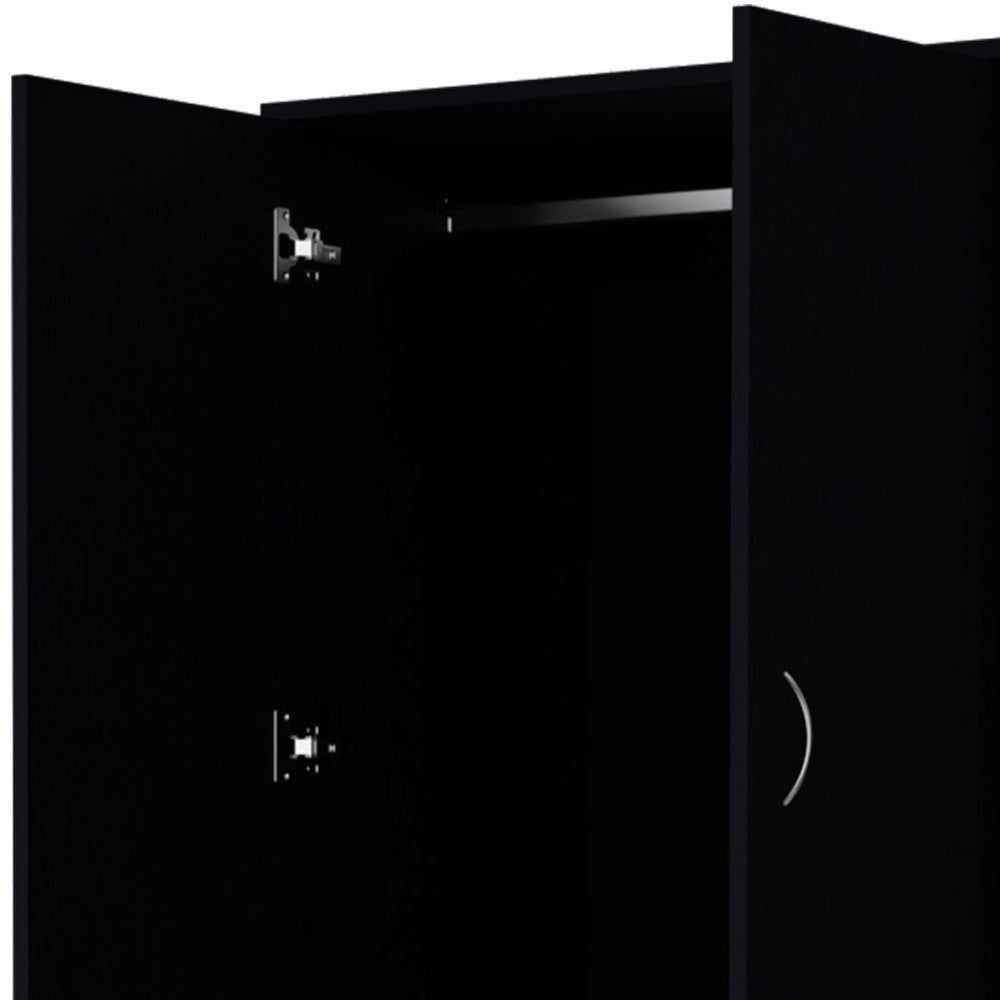 - This dresser include both dresser drawers and wardrobe doors that open to reveal shelves or a space to hang clothes.