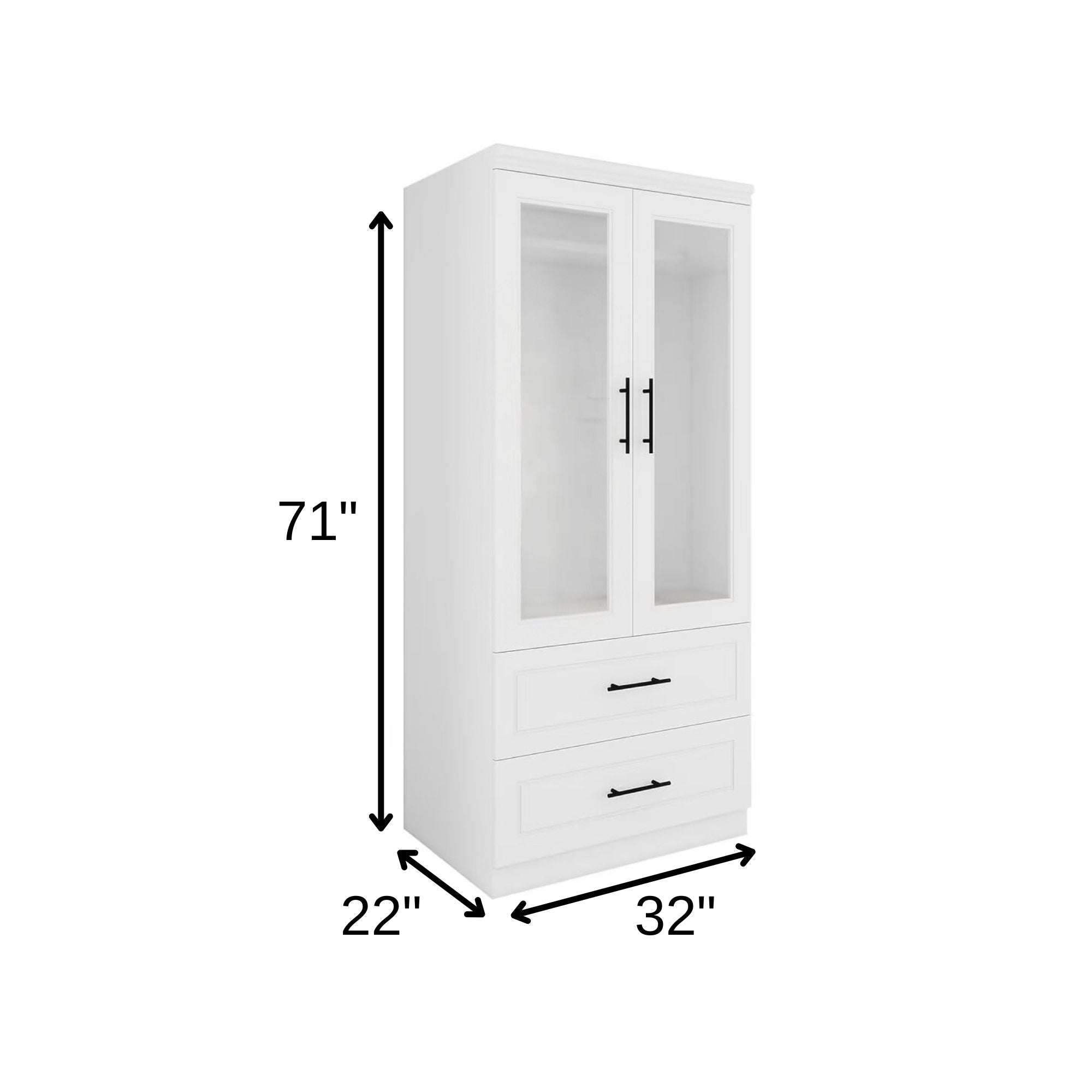 - This armoire includes both dresser drawers and wardrobe doors that open to reveal shelves or a space to hang clothes.