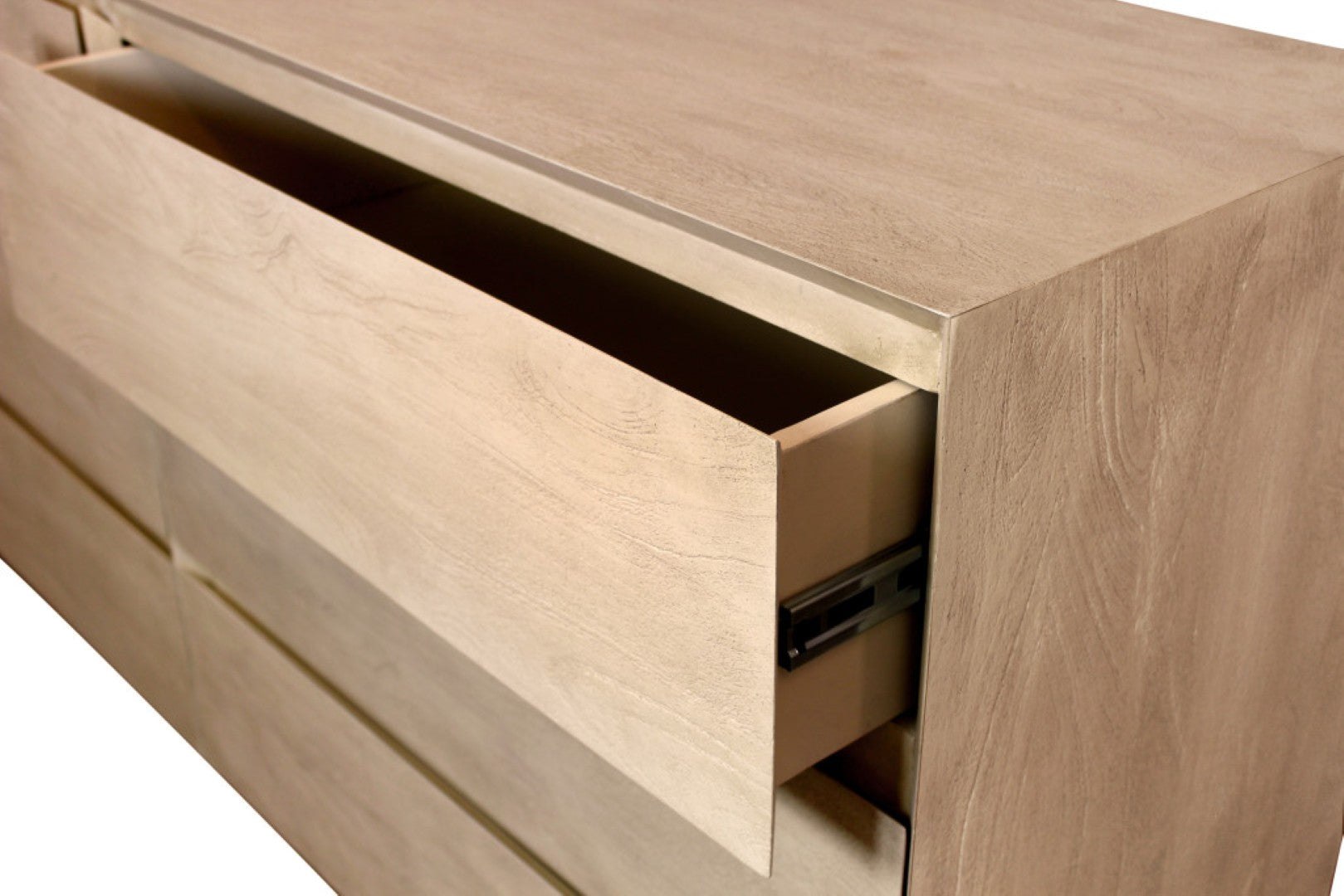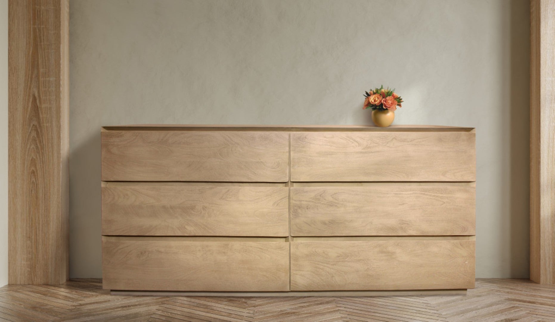 - Hand-crafted from solid mango wood, this dresser showcases natural beauty with purposeful distressing for a rustic touch.