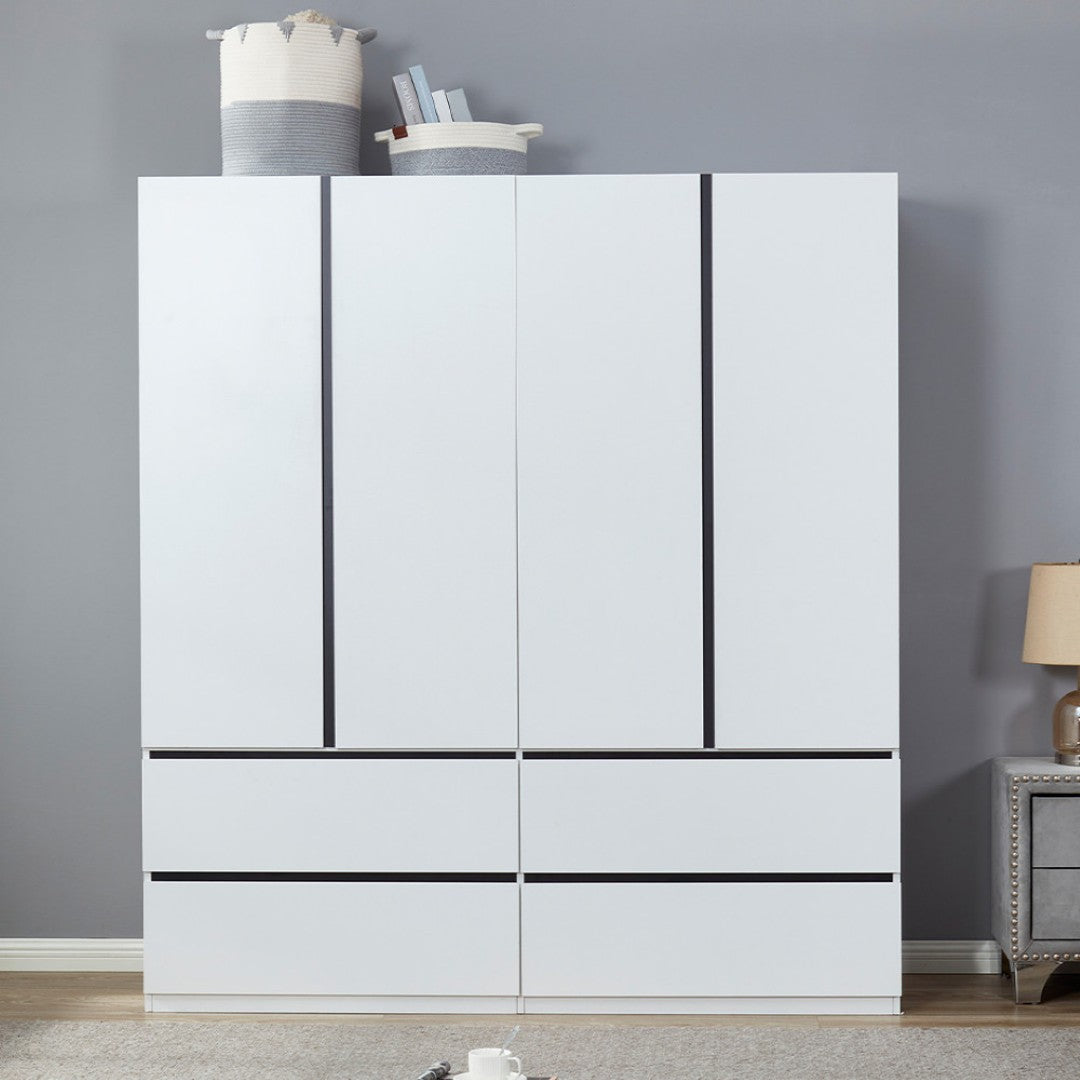 - Modern wardrobe includes 4 cabinet doors and 4 drawers for hidden storage and organization of your essentials.