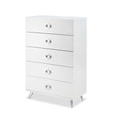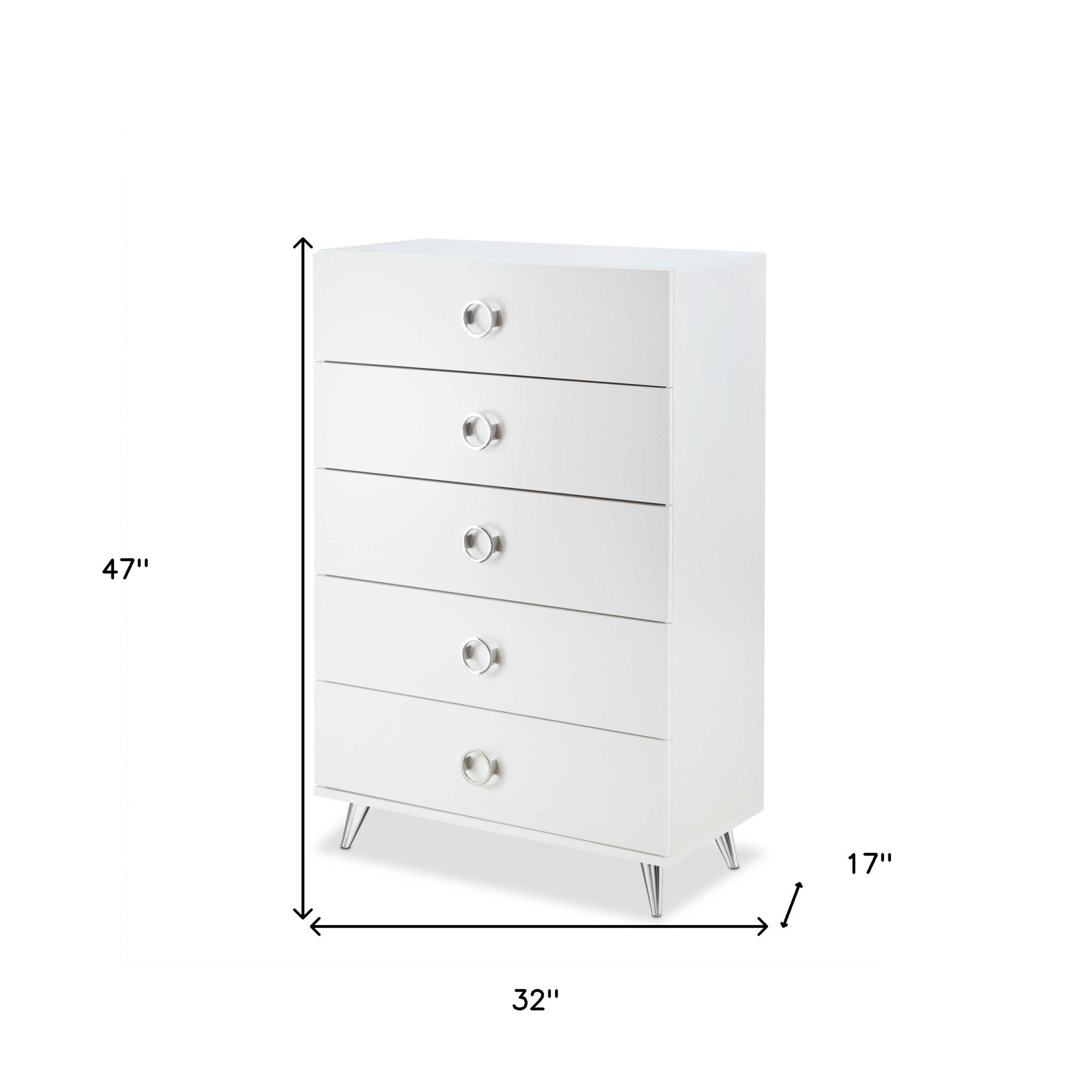 - White and Chrome Modern Narrow 5 Drawer Dresser.