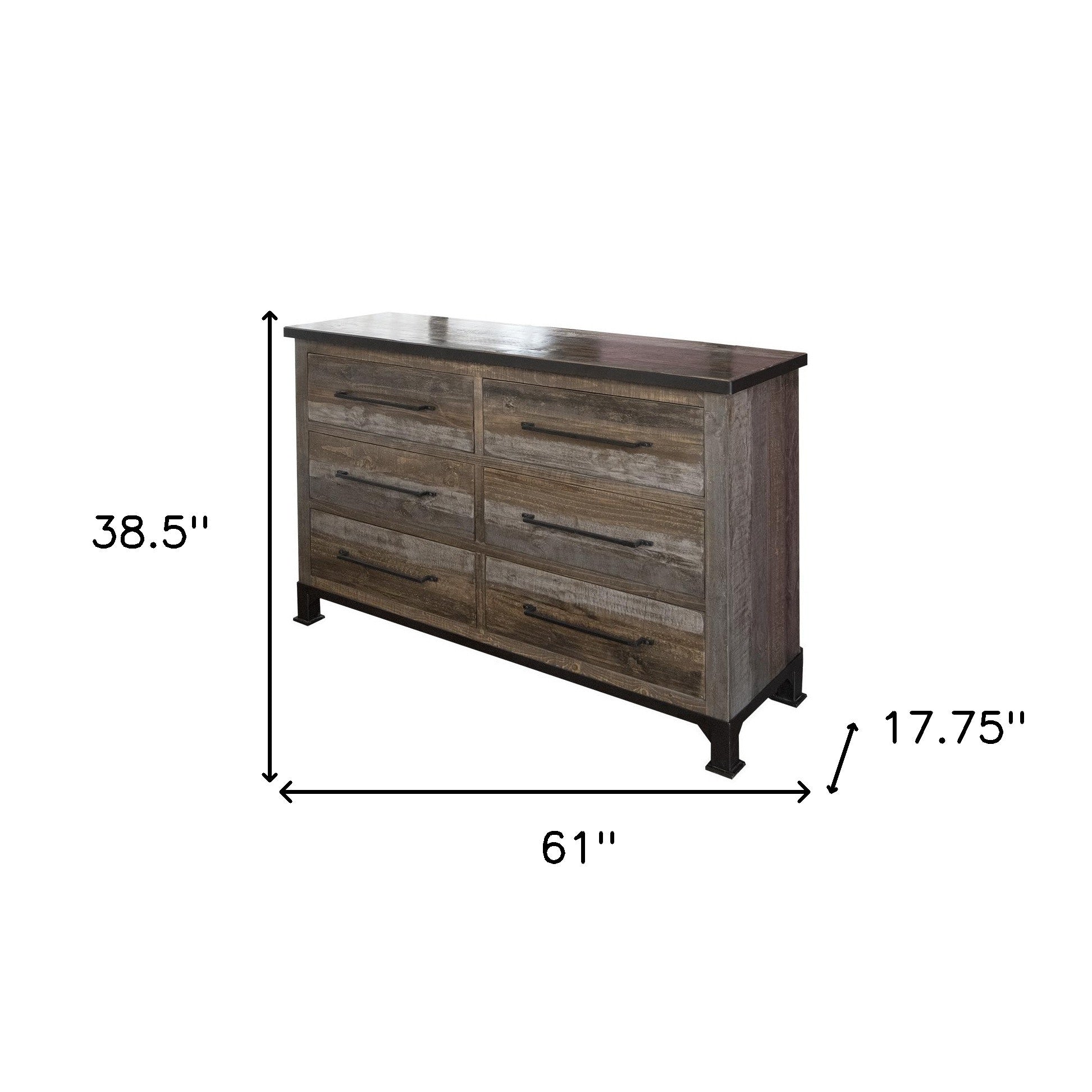- Hand-painted finish in rustic gray and brown multi-tonal for a "reclaimed wood" look.