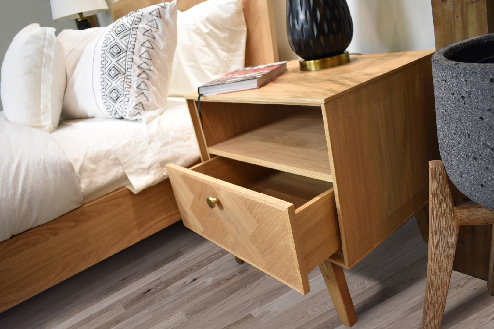 - Materials: Solid Oak, MDF Oak Veneer, Brass