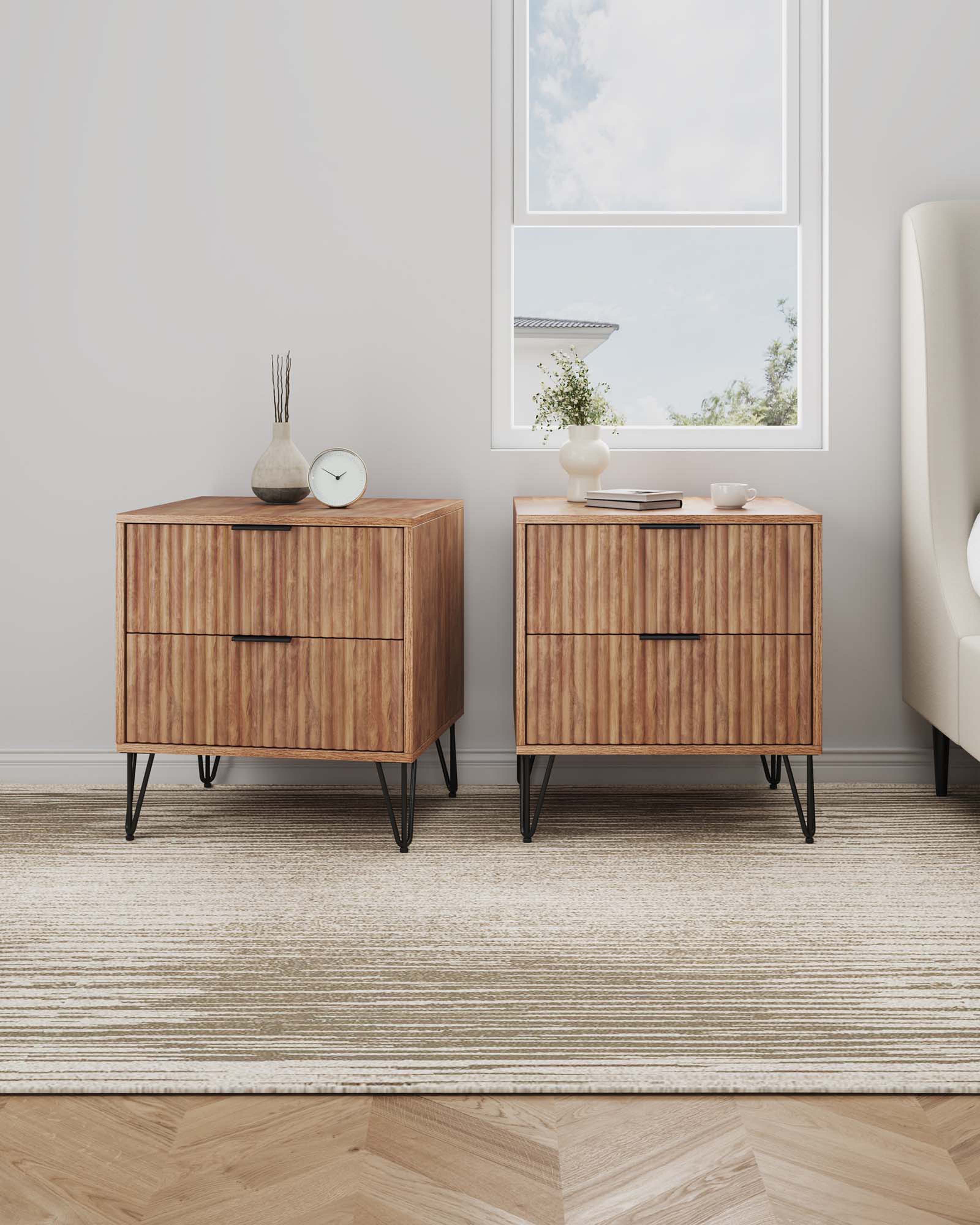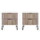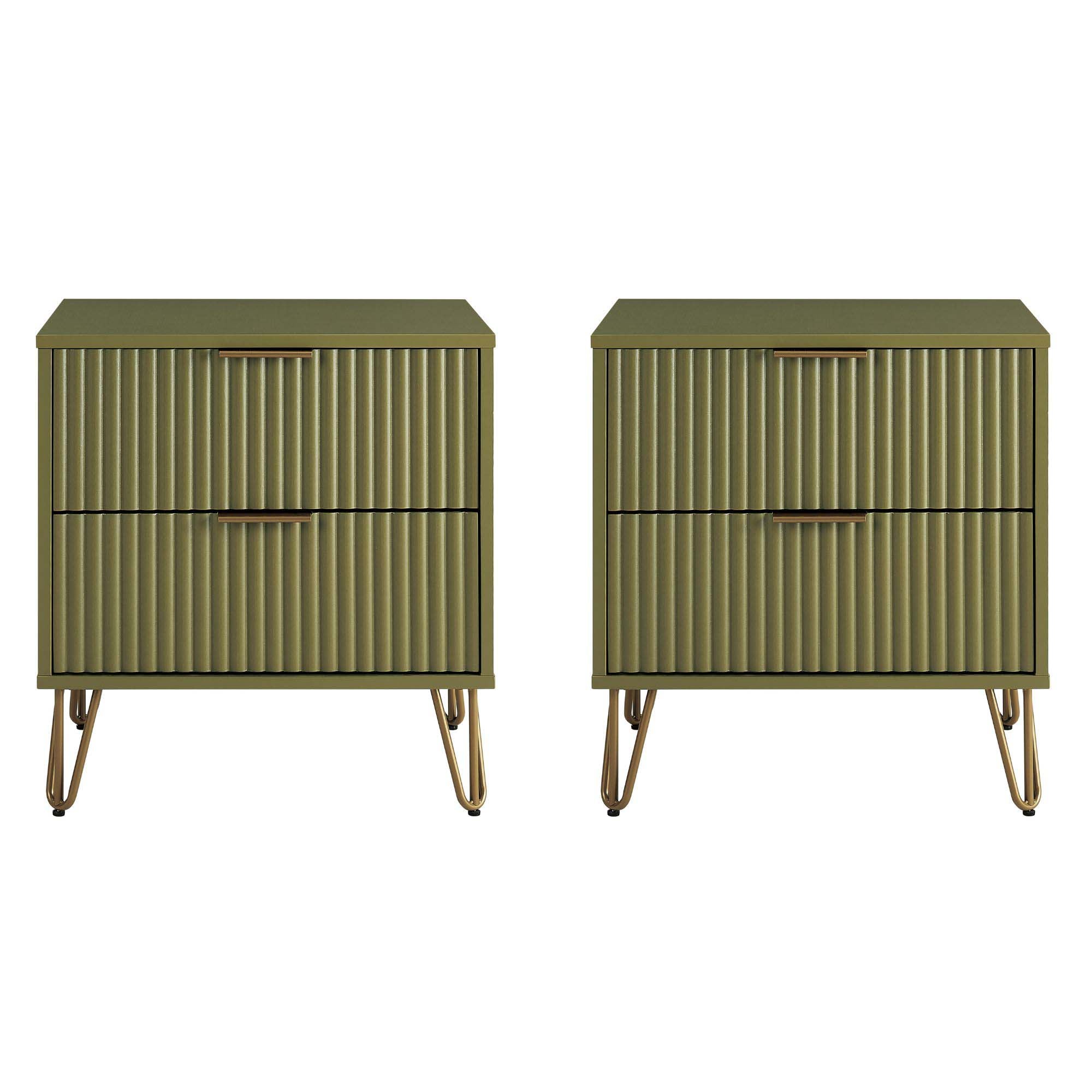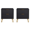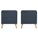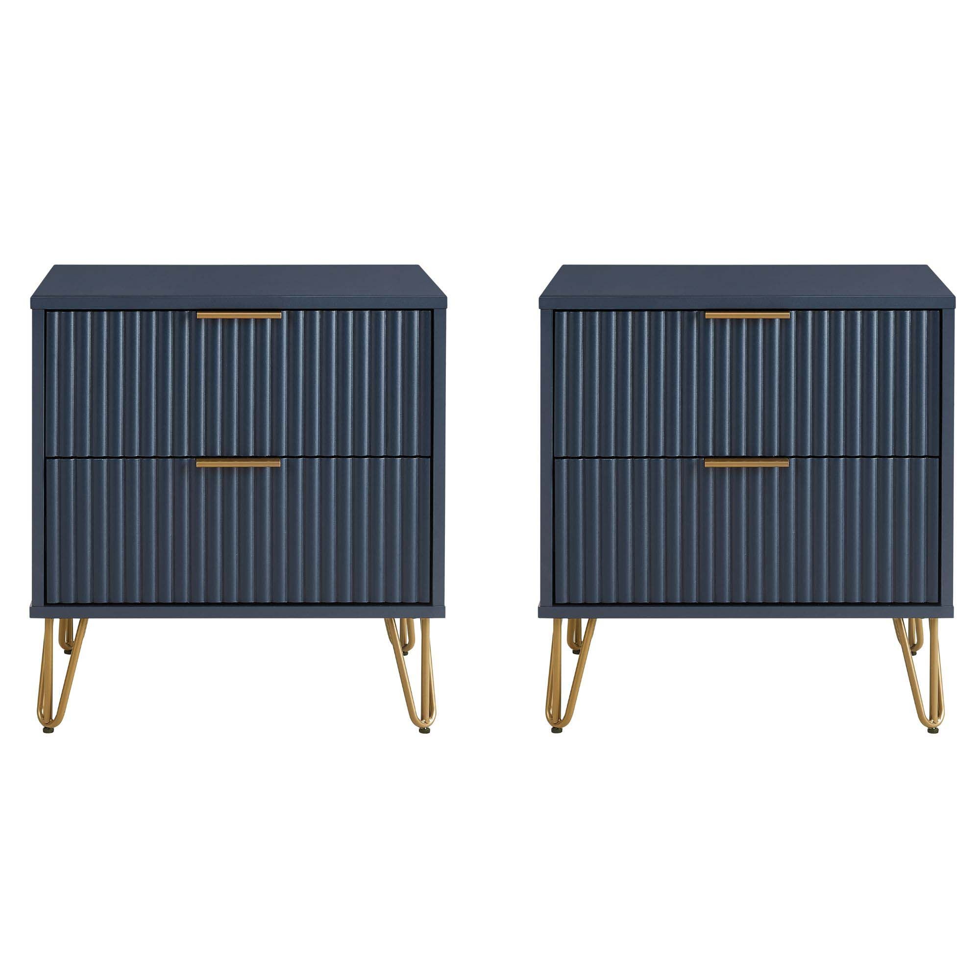 The Manhattan Comfort DUMBO Collection brings tasteful modern glam to your home! With its unique vertical ribbed drawer front, full extension and soft close , and stylish splayed metal legs, the collection is not only a true beauty but also made with quality! Stunning variety of s with sleek metal horizontal handles. DUMBO is what you have been looking for all this time! Make your house a home with the DUMBO Collection.- Modern-Contemporary with a taste of Glam - Nightstand for Bedroom and Living Room Use. Set of 2.