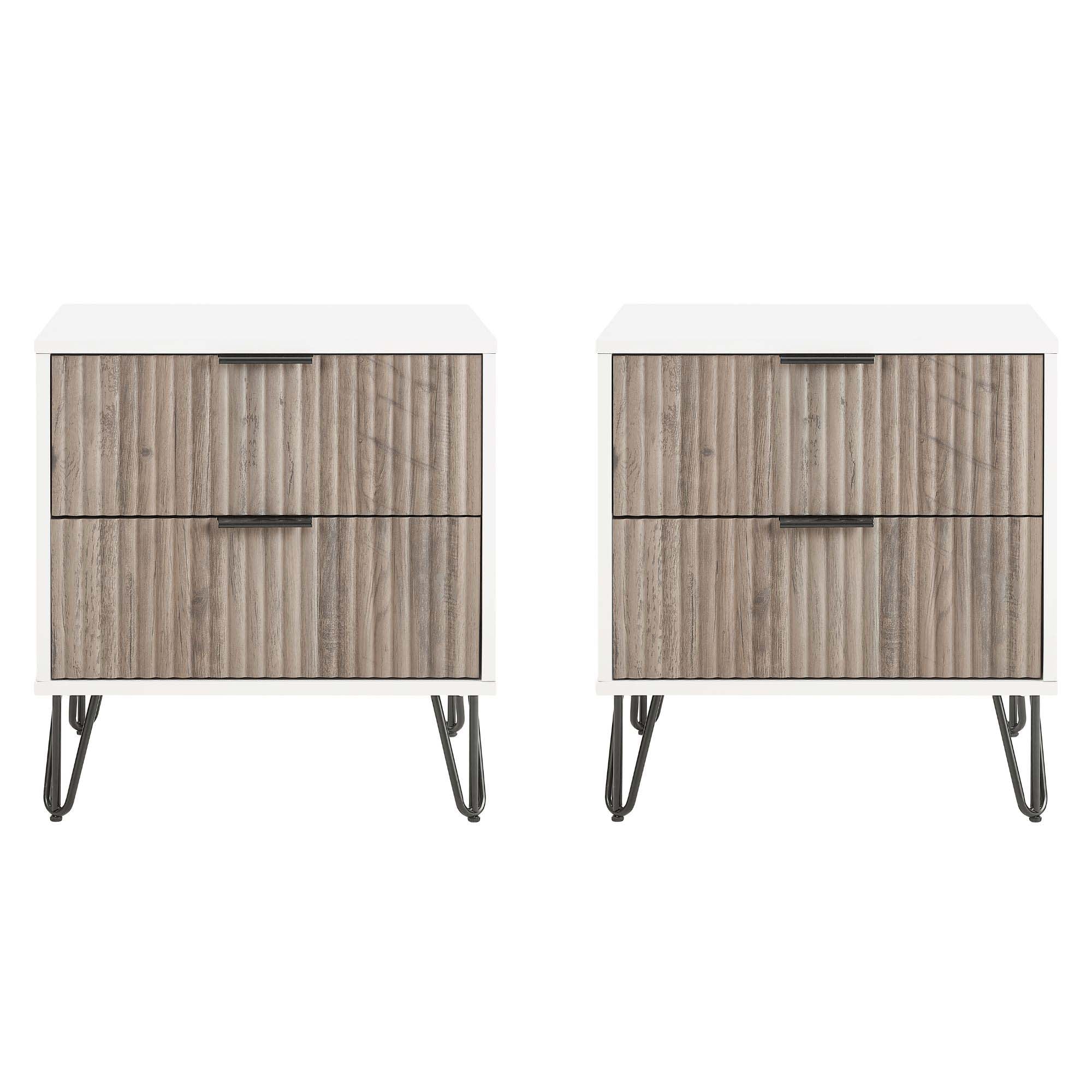 Description for 2-NS002-WH Manhattan Comfort DUMBO 2.0 Modern Nightstand with 2 Drawer and Metal Feet in White- Set of 2