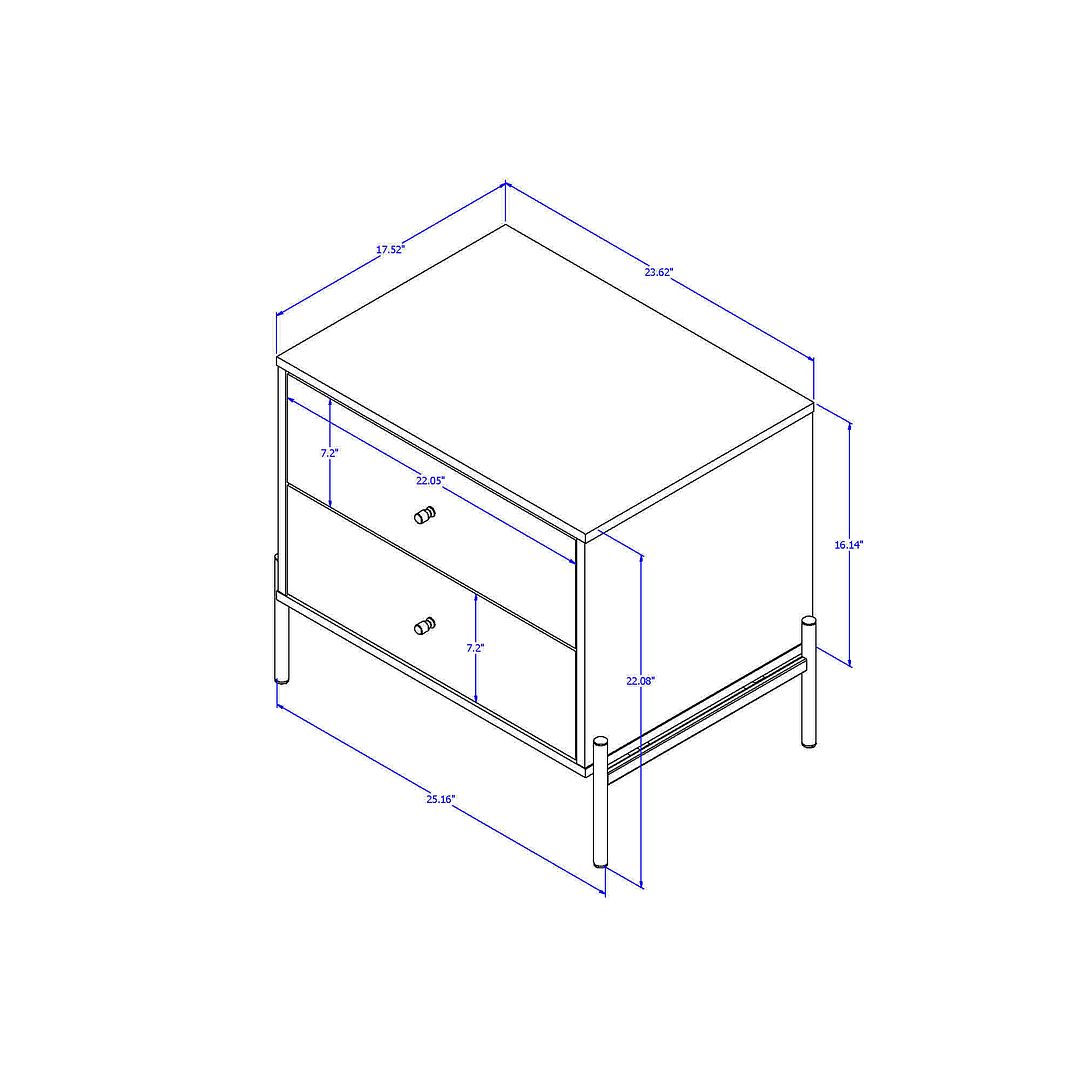 Give your bedroom or living room a boost of modern and glam style with the gorgeous Jasper Nightstand. The smooth tabletop provides the perfect platform for framed photos and displaying decor, or daily beauty routine needs. Two rounded gold knob accented full extension allow extra space for versatile and practical use. Completed with gold brushed steel legs, this nightstand is the perfect piece to complete your unique and chic space.- Modern Nightstand for Bedroom and Living Room Use.